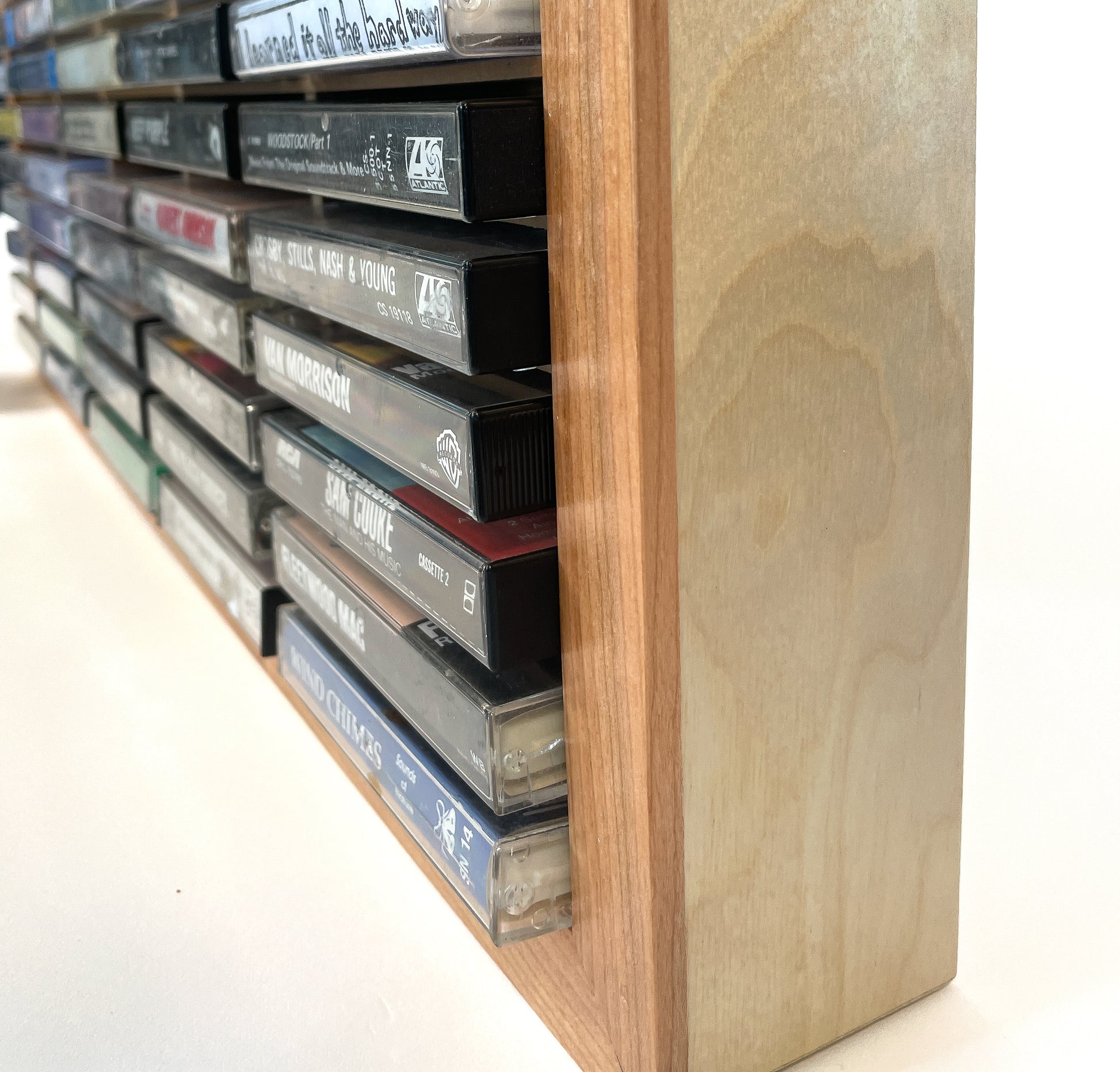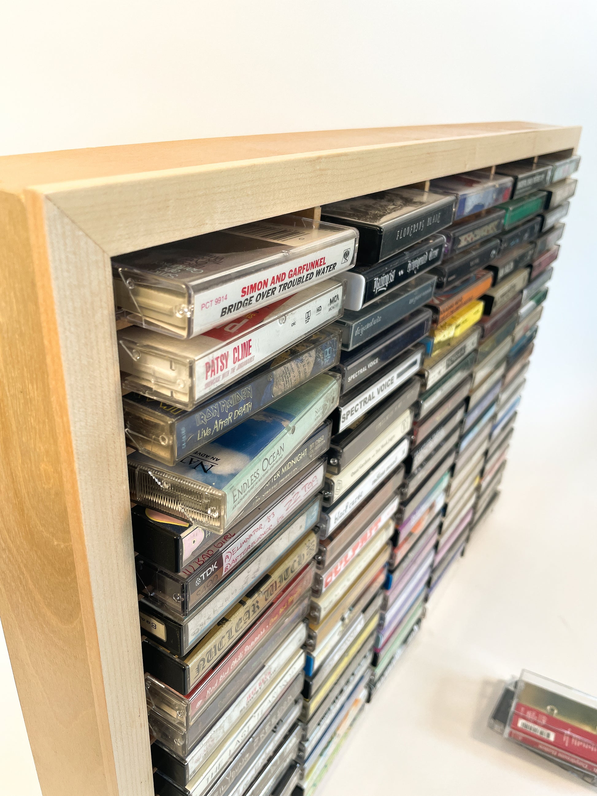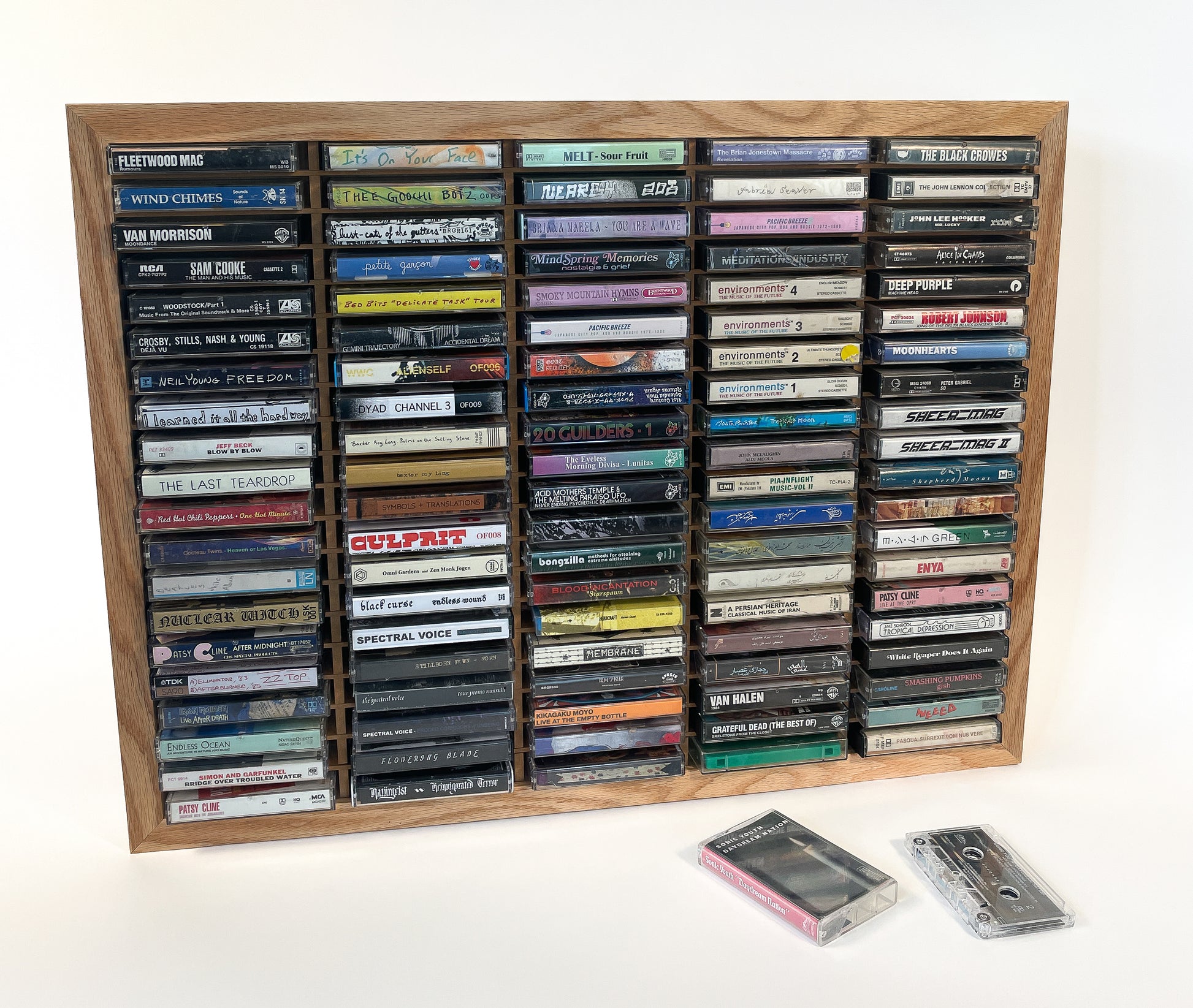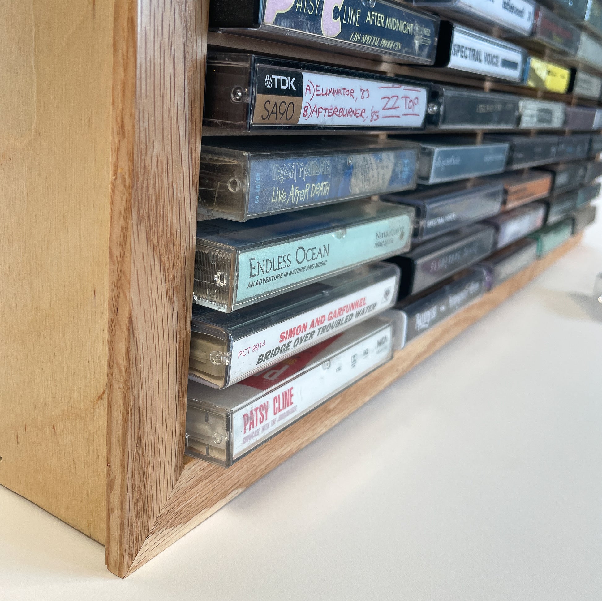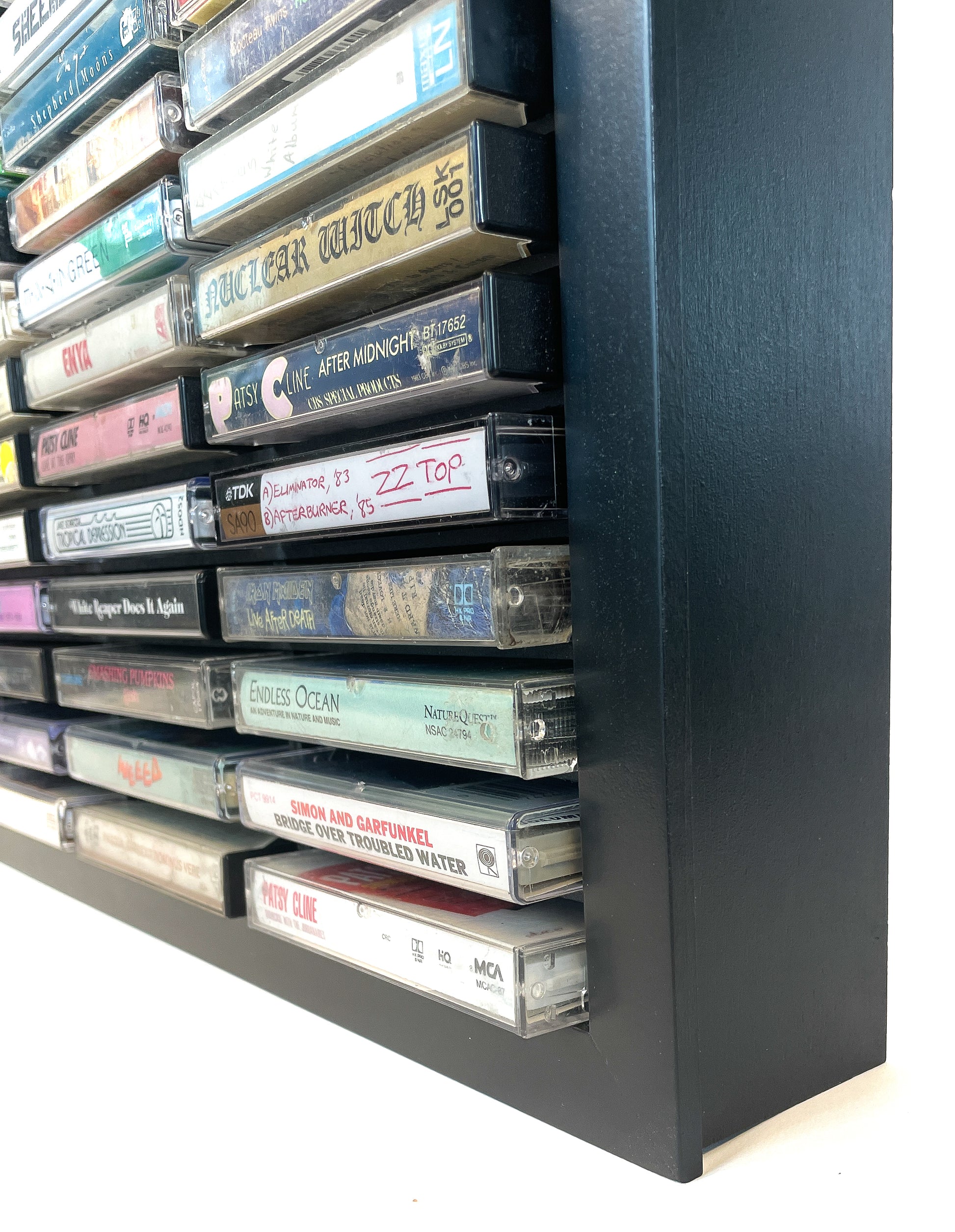 - Each slot fits a standard Cassette Tape (L)4 5/16” X (W)3/4” X (Depth)2 1/4”