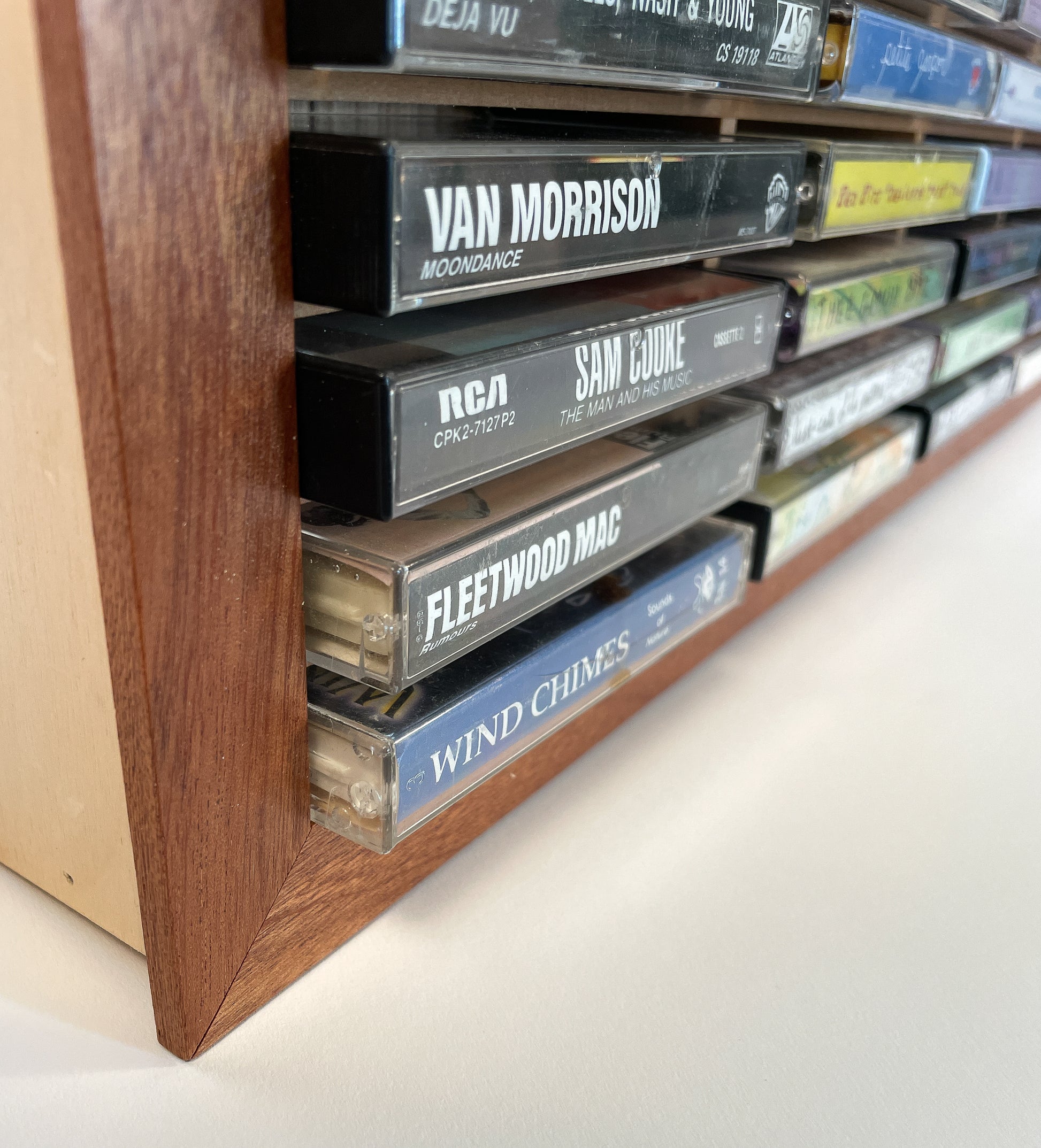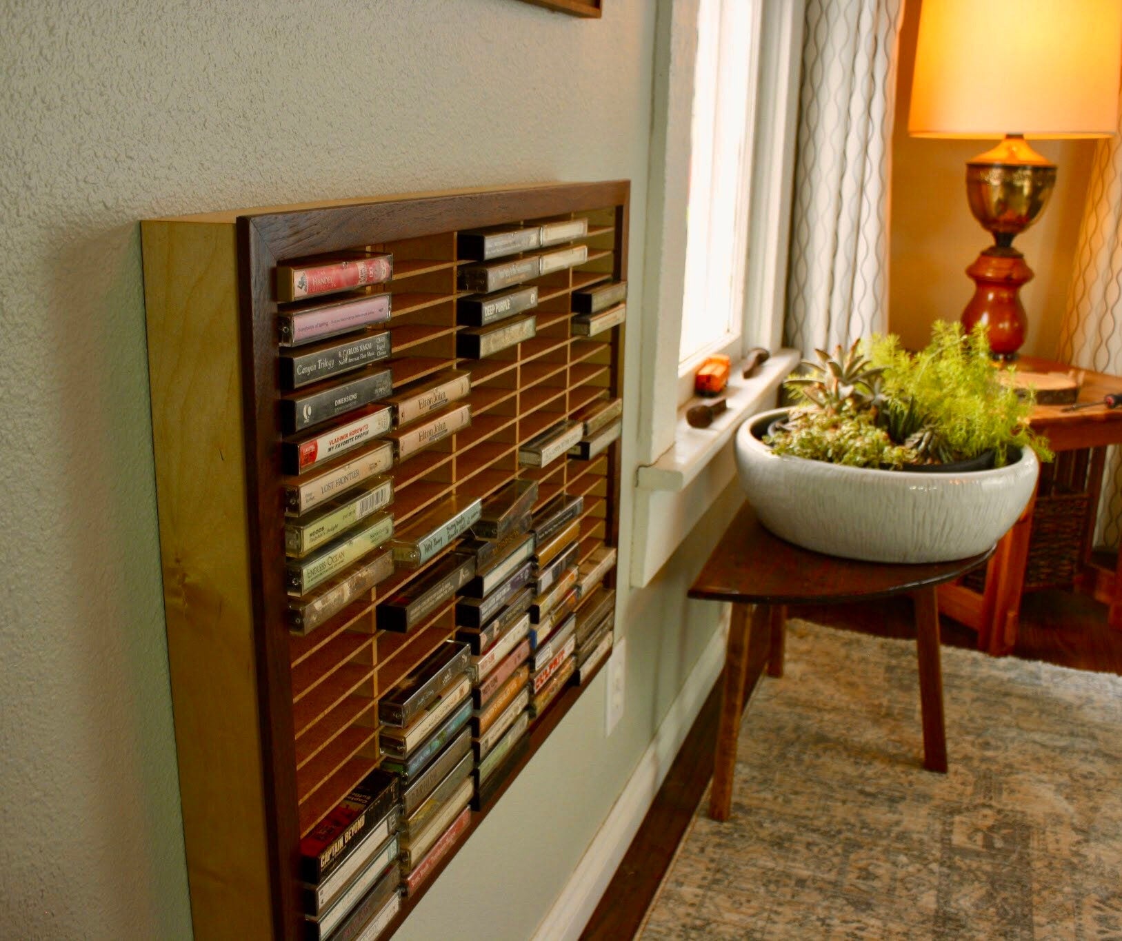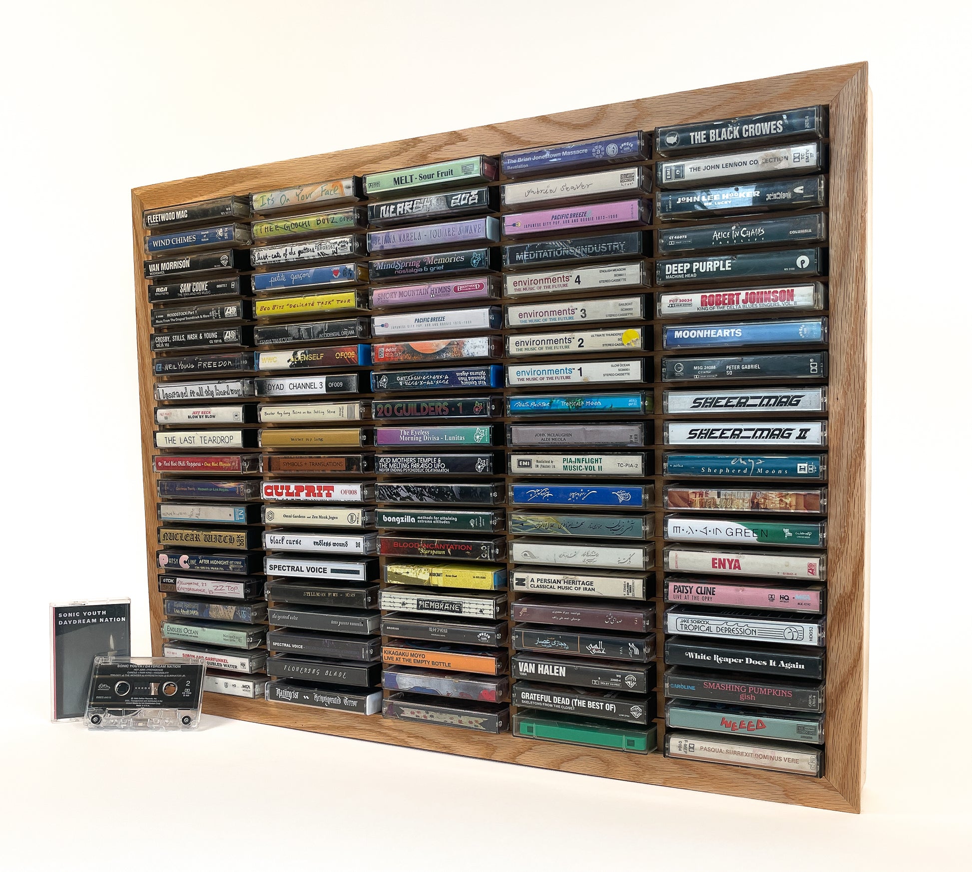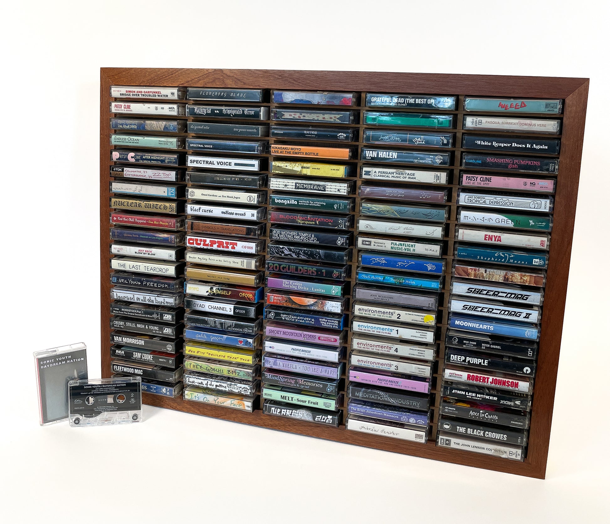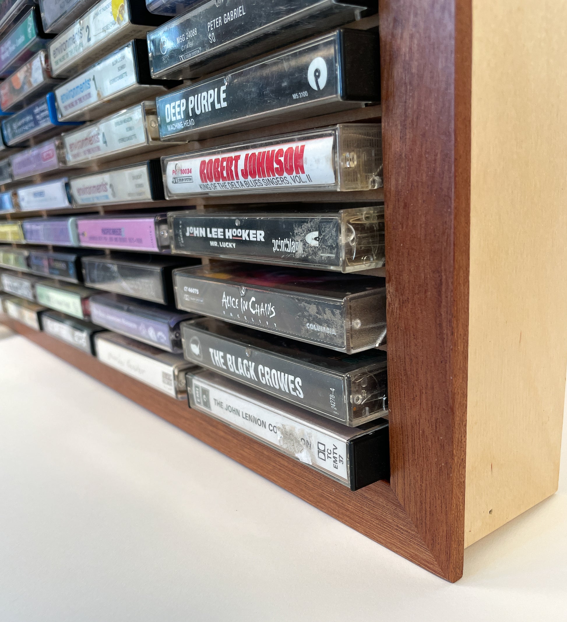 - Each slot fits a standard Cassette Tape (L)4 5/16” X (W)3/4” X (Depth)2 1/4”