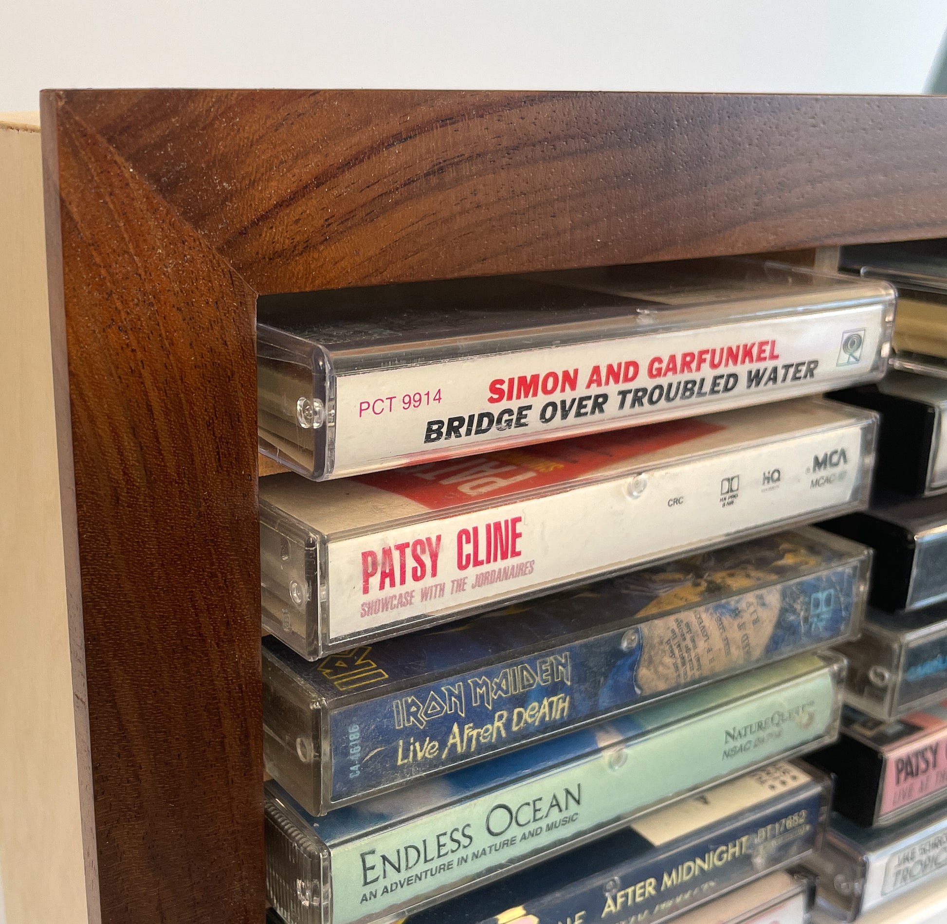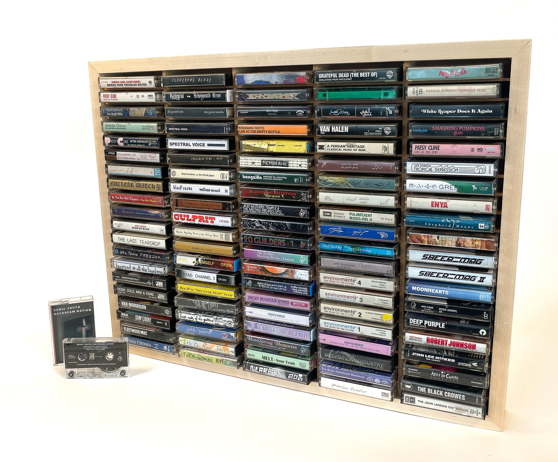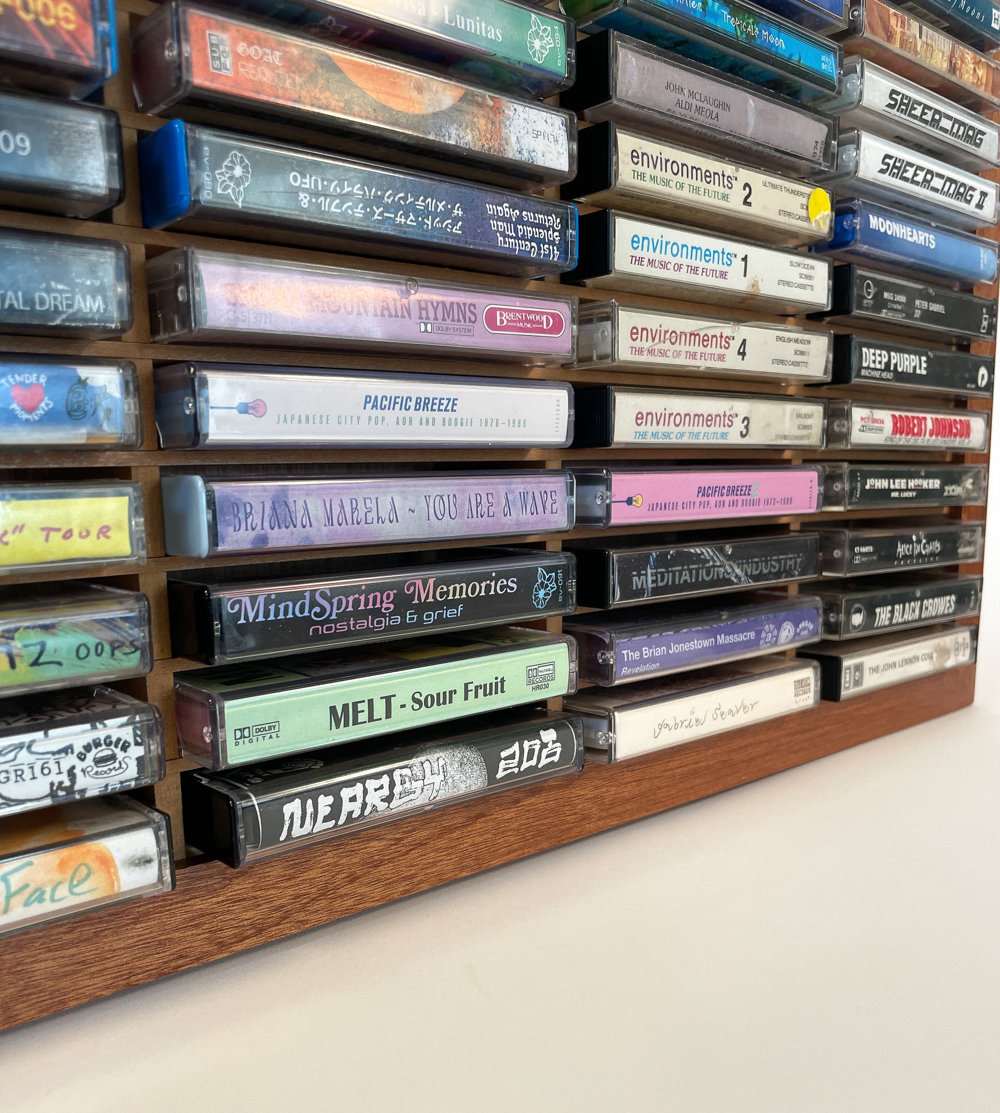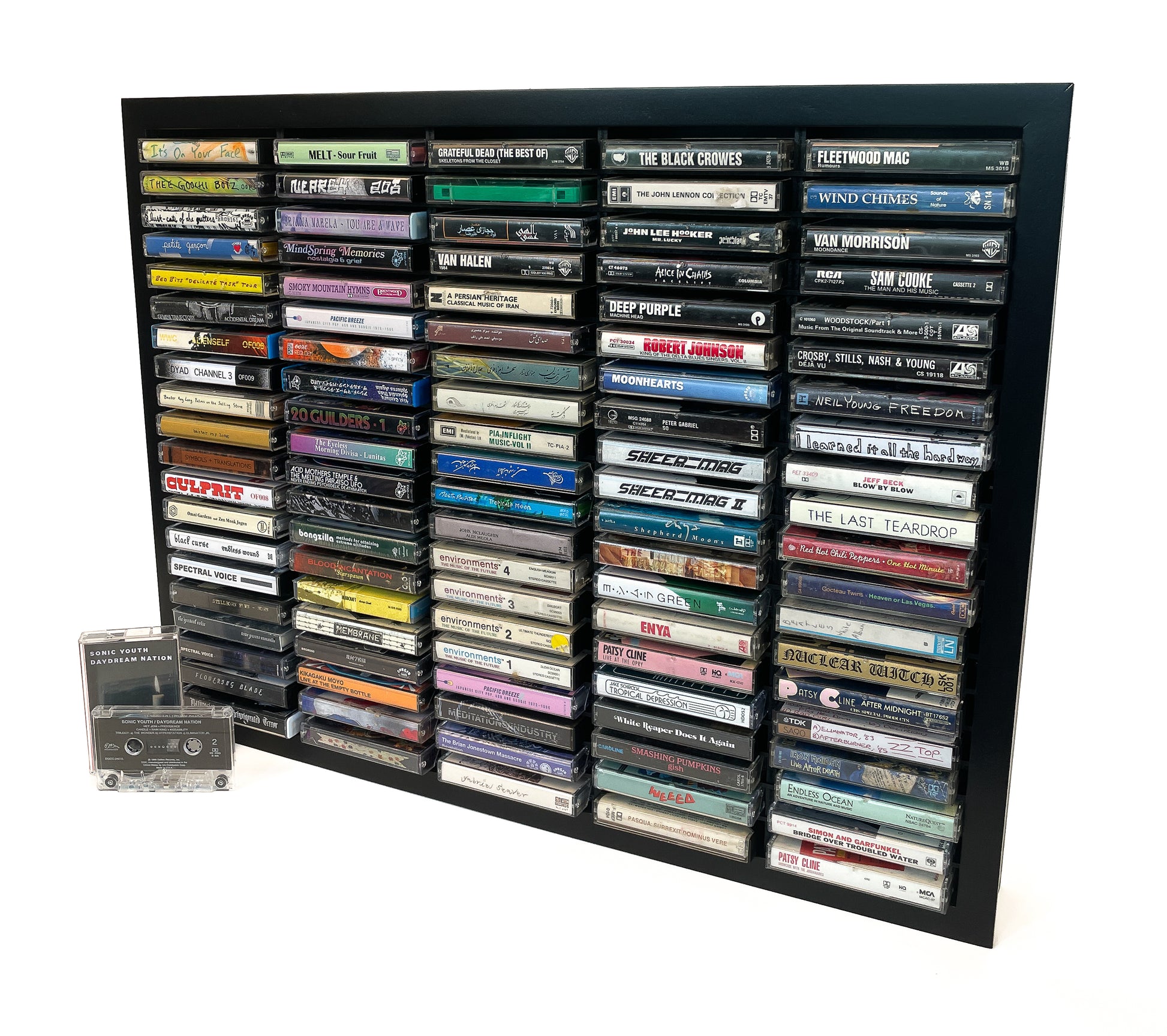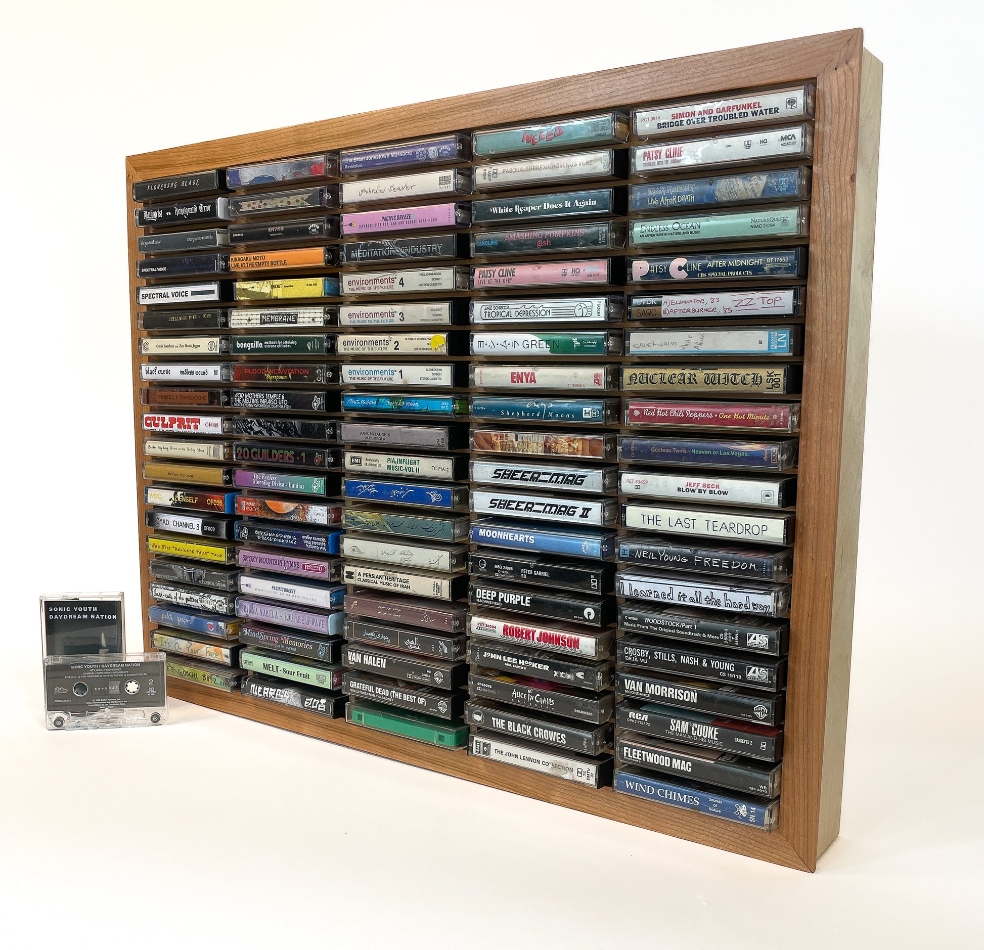 - Each slot fits a standard Cassette Tape (L)4 5/16” X (W)3/4” X (Depth)2 1/4”