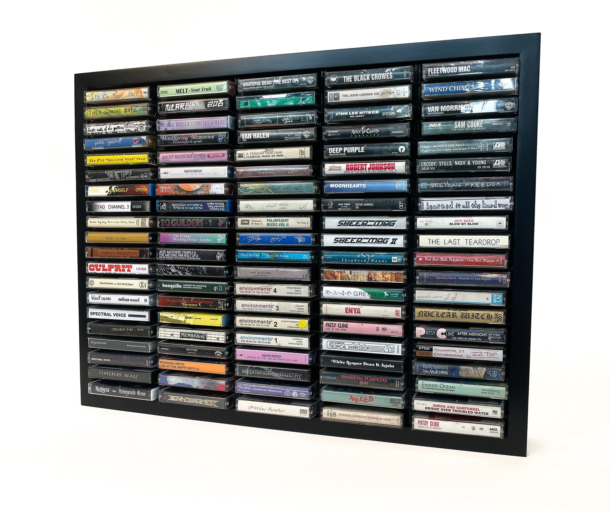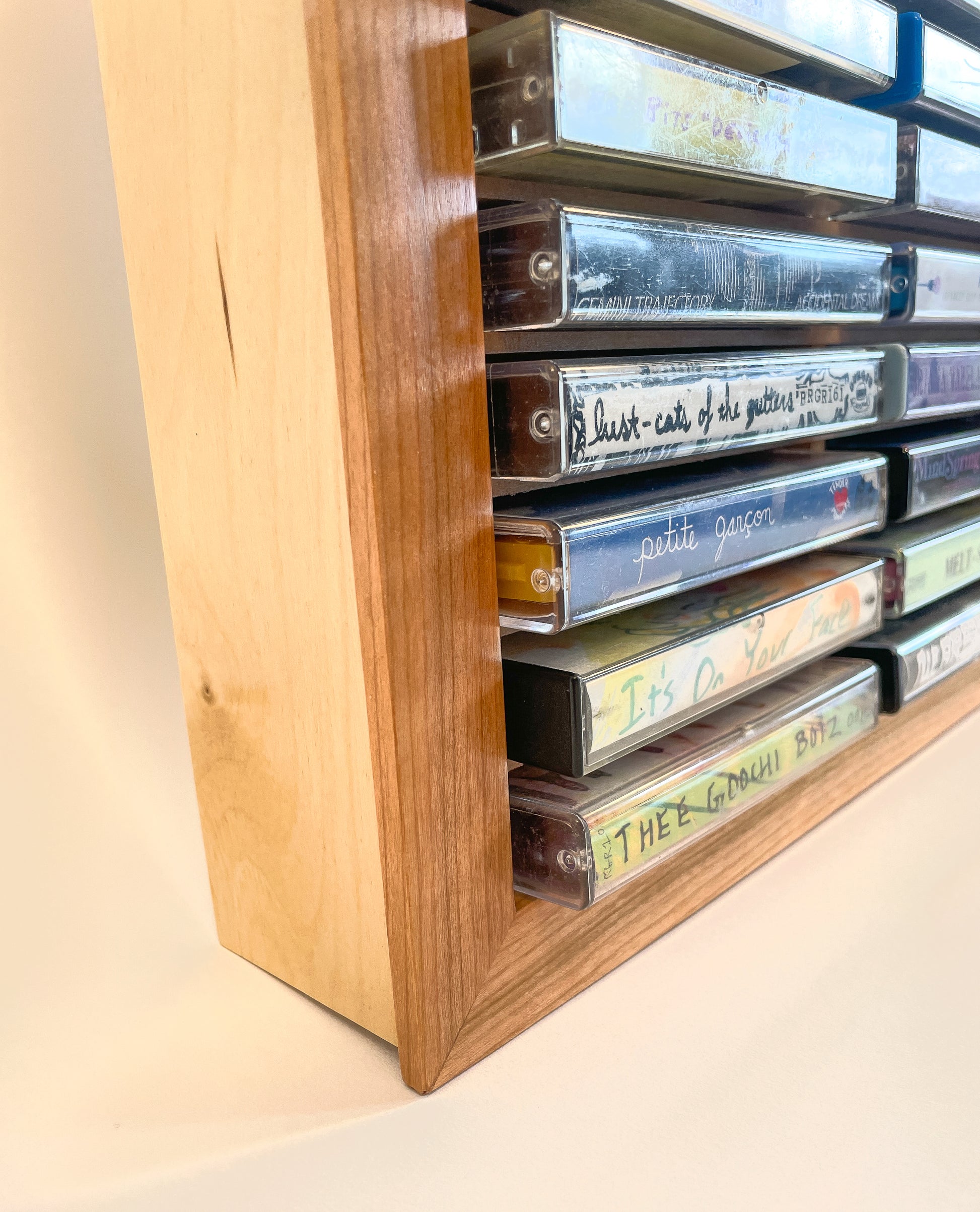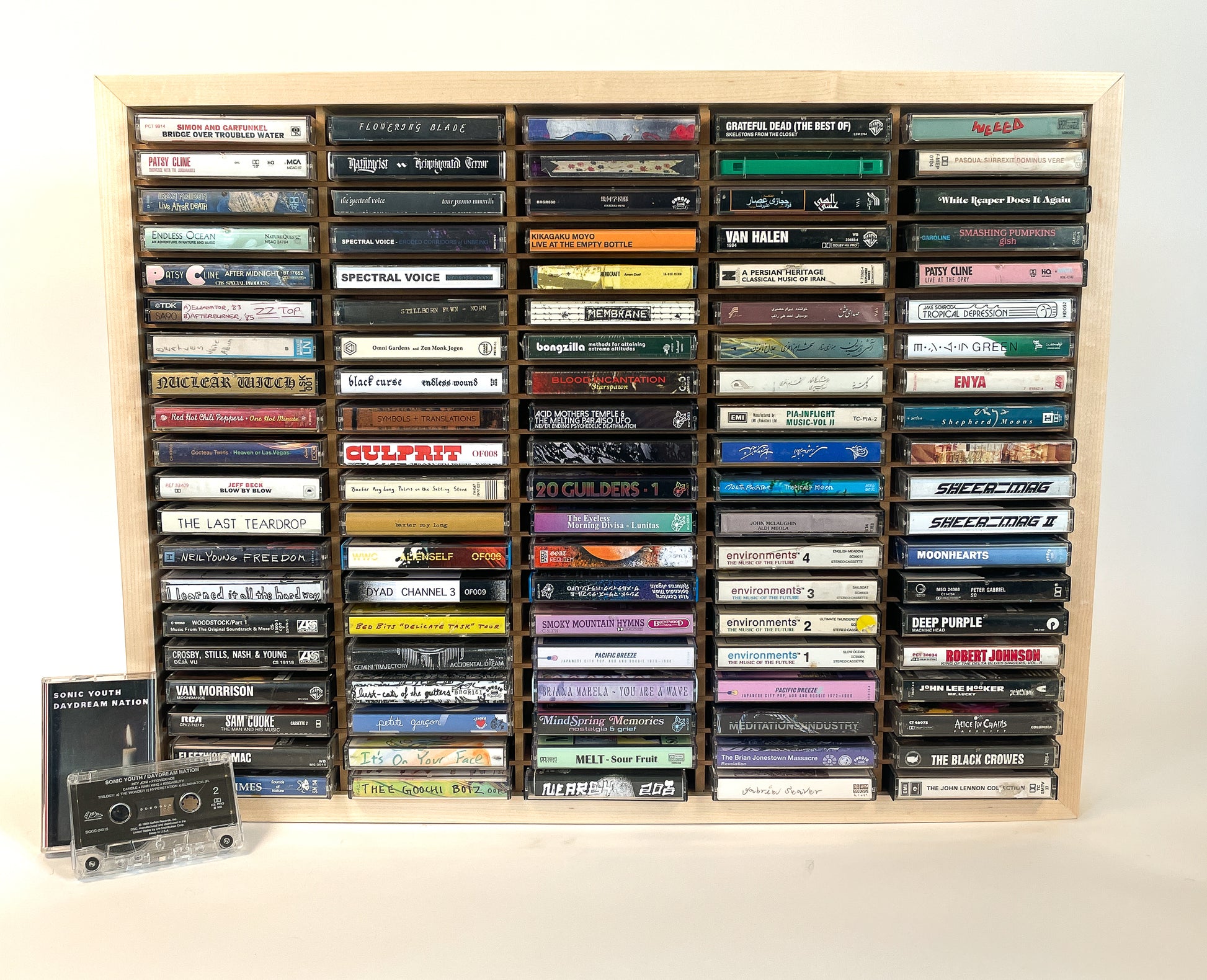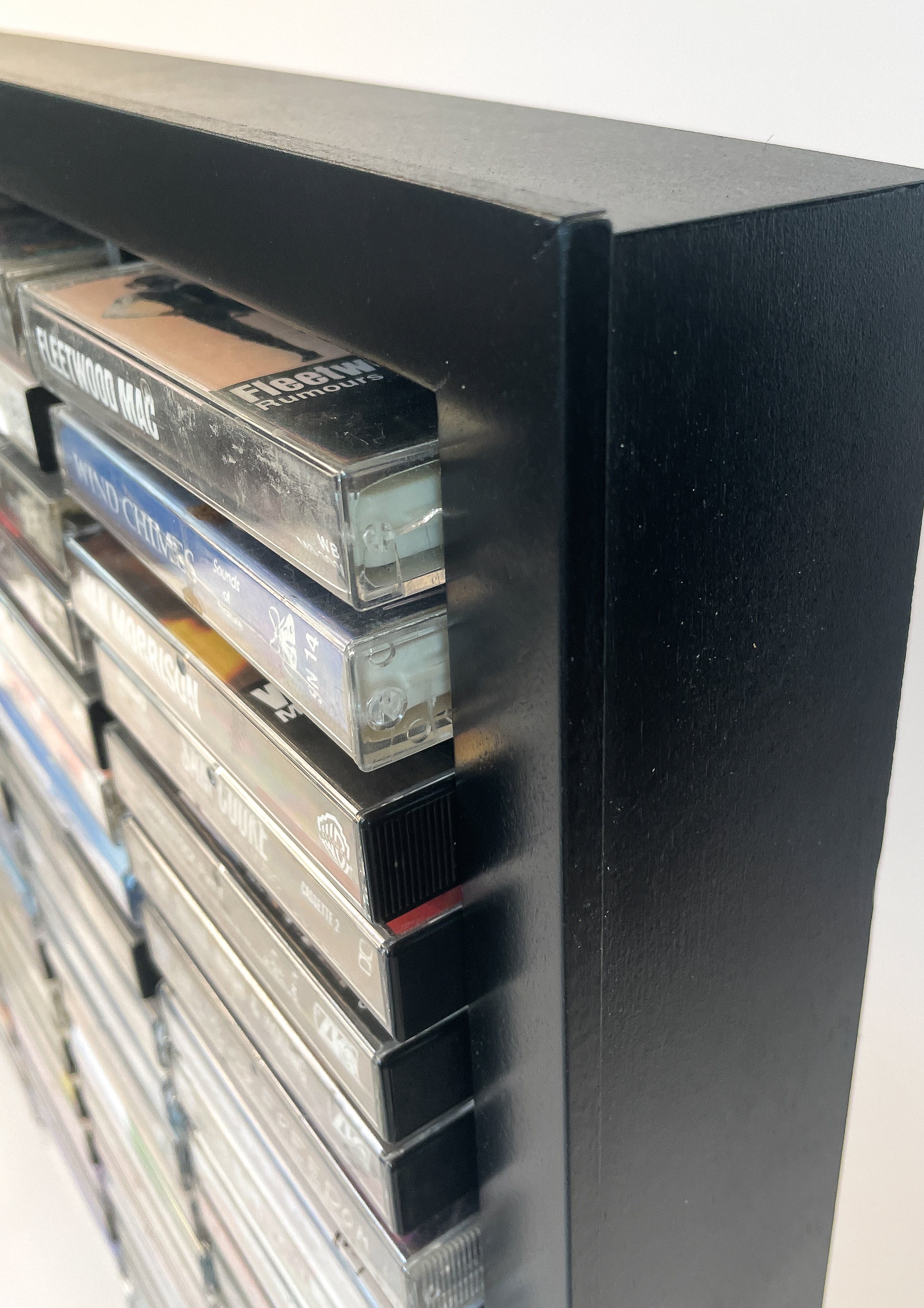 - Each slot fits a standard Cassette Tape (L)4 5/16” X (W)3/4” X (Depth)2 1/4”
