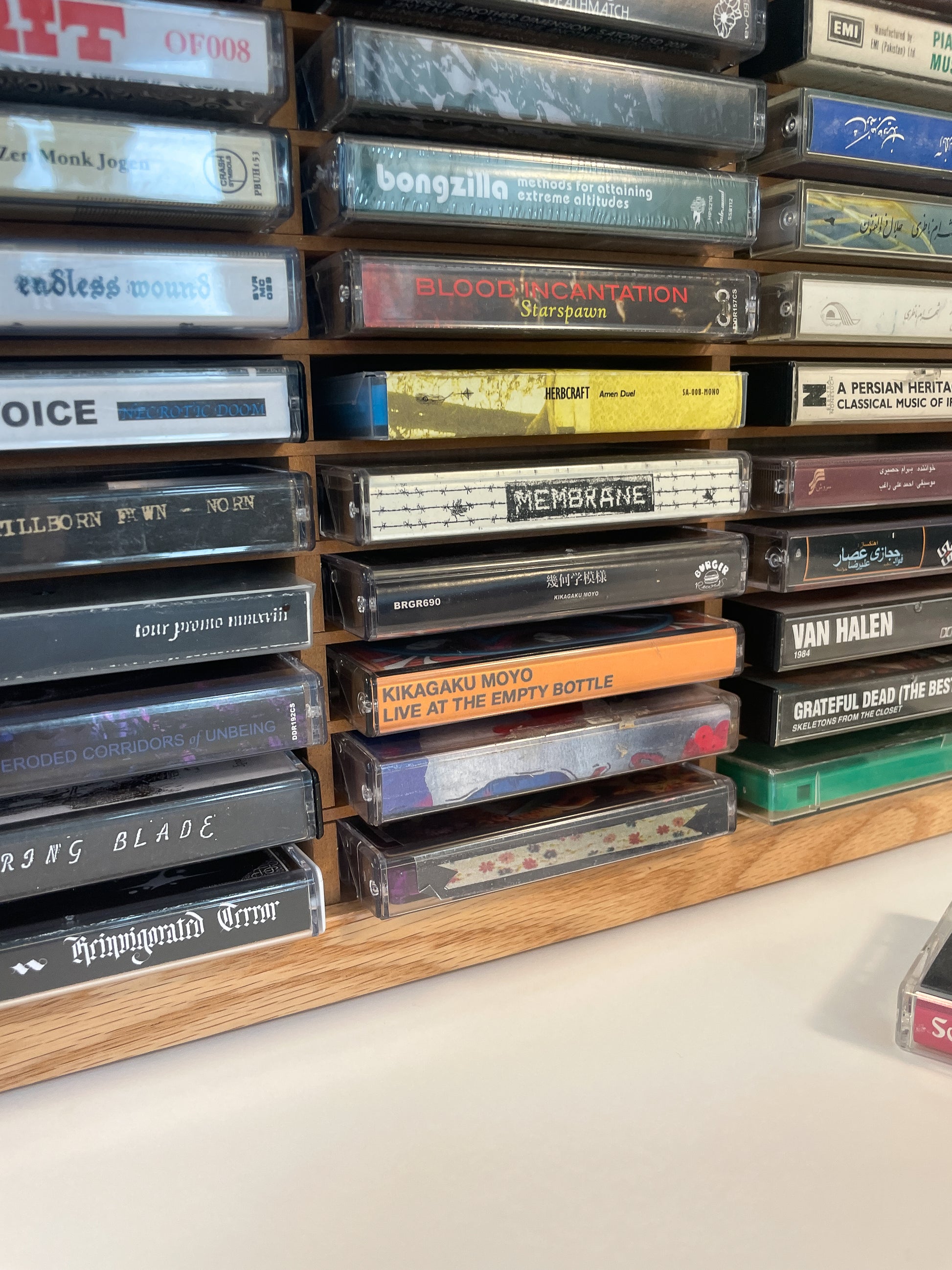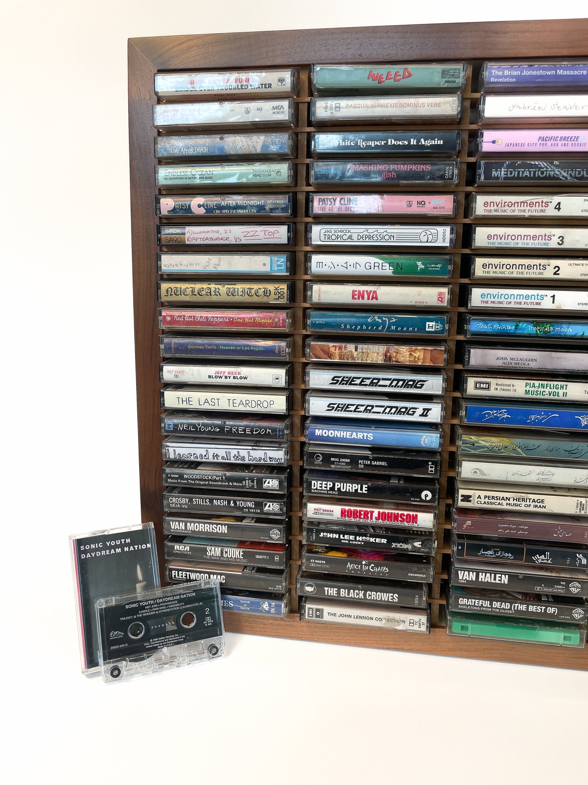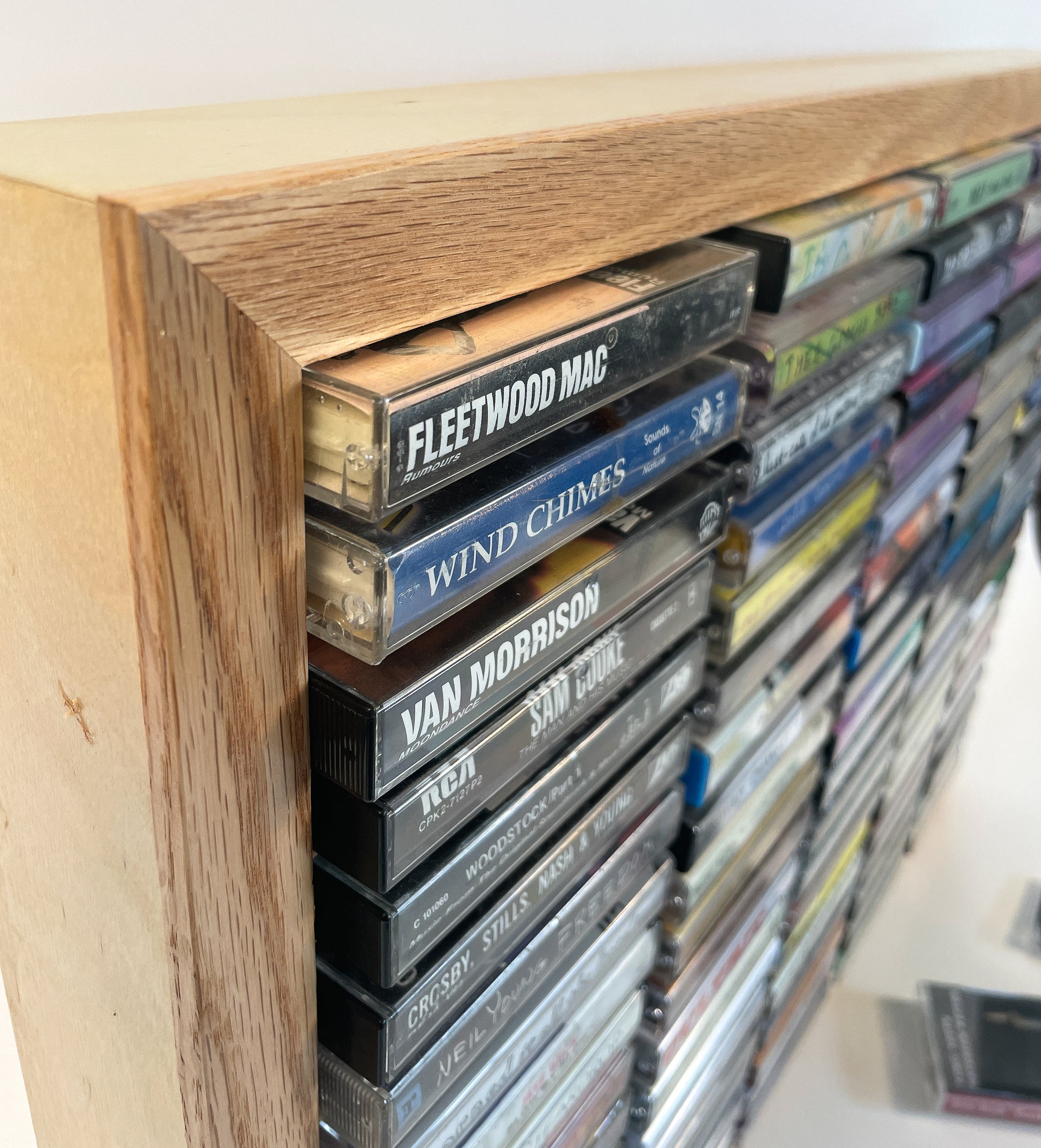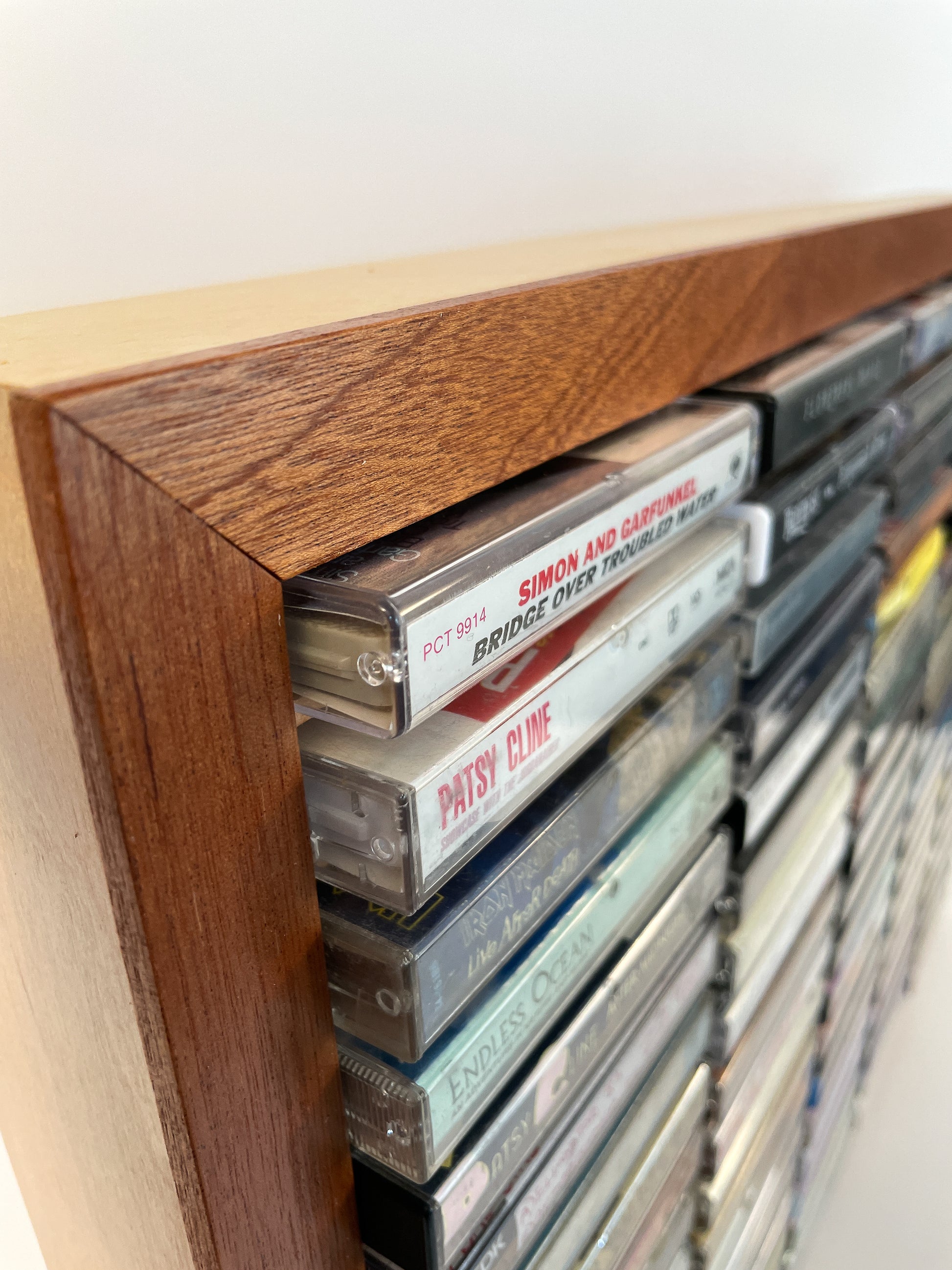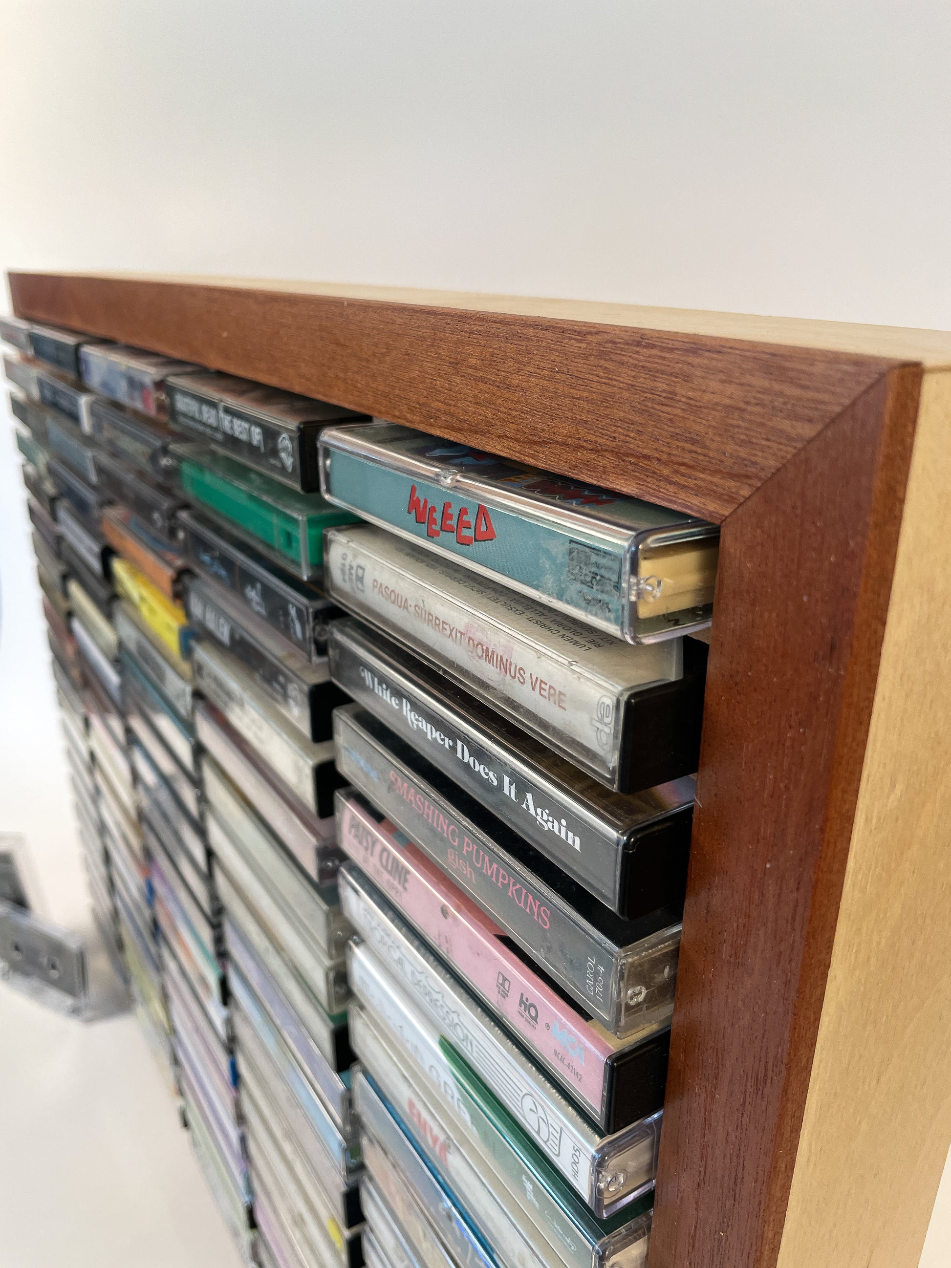 - Each slot fits a standard Cassette Tape (L)4 5/16” X (W)3/4” X (Depth)2 1/4”