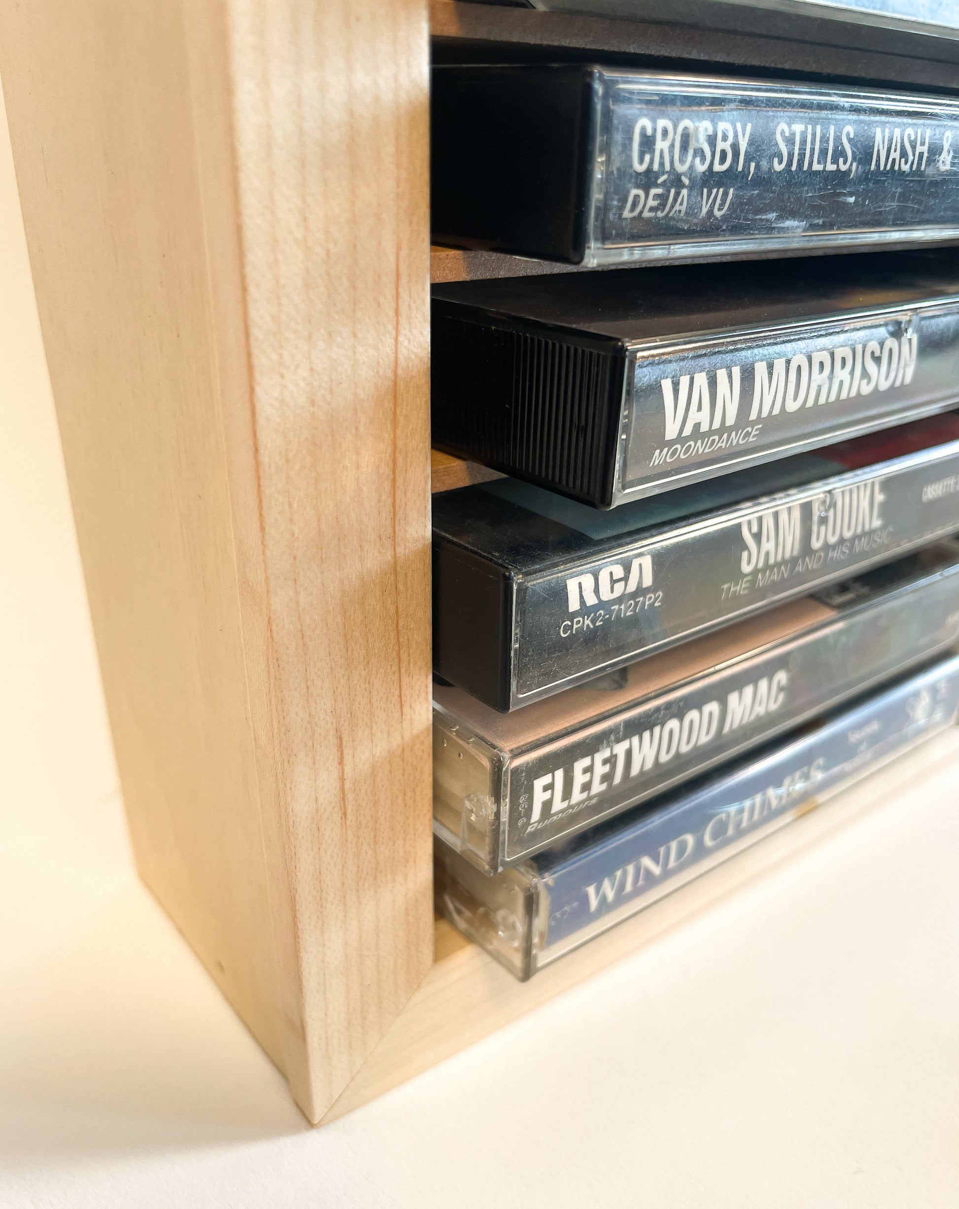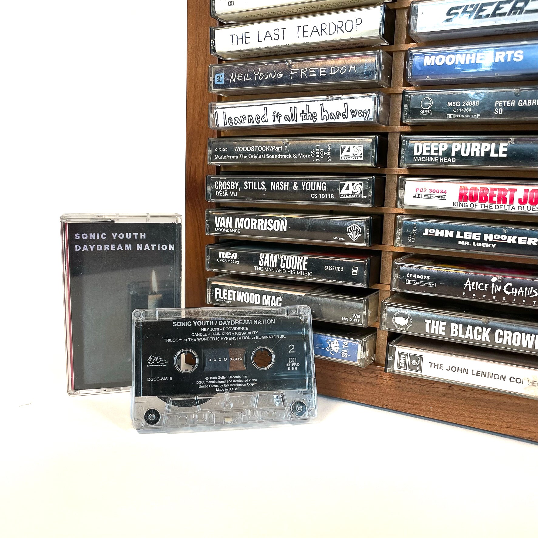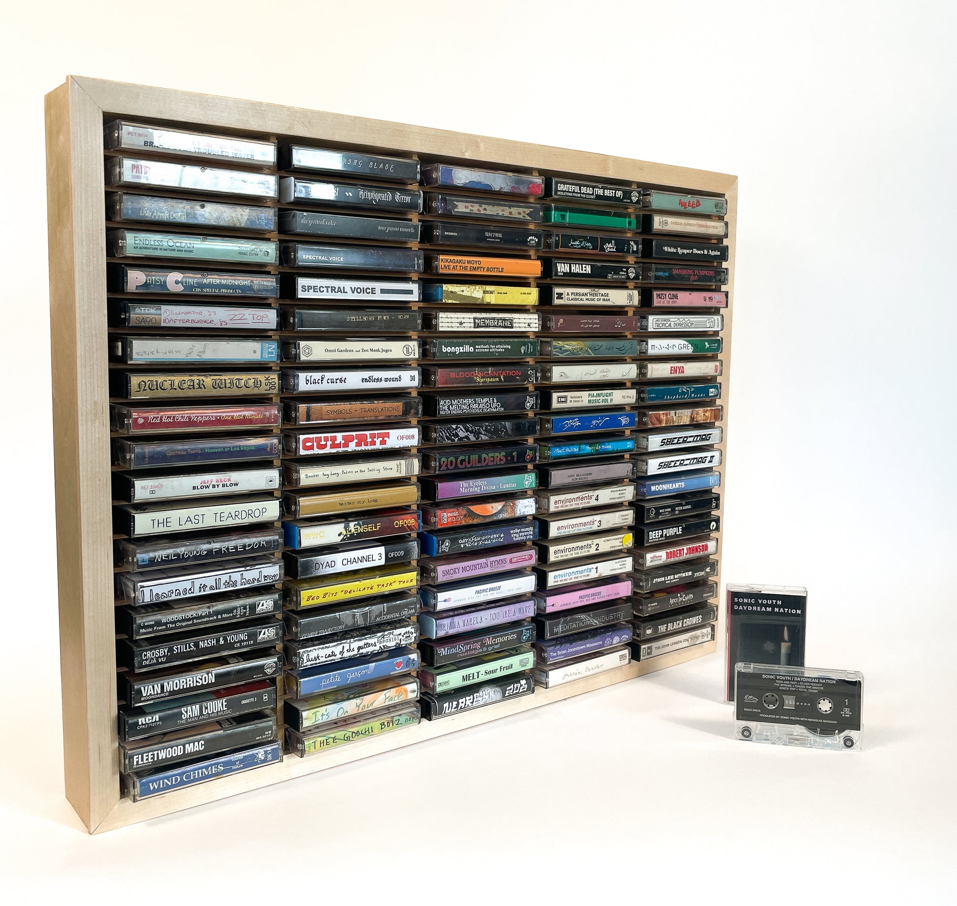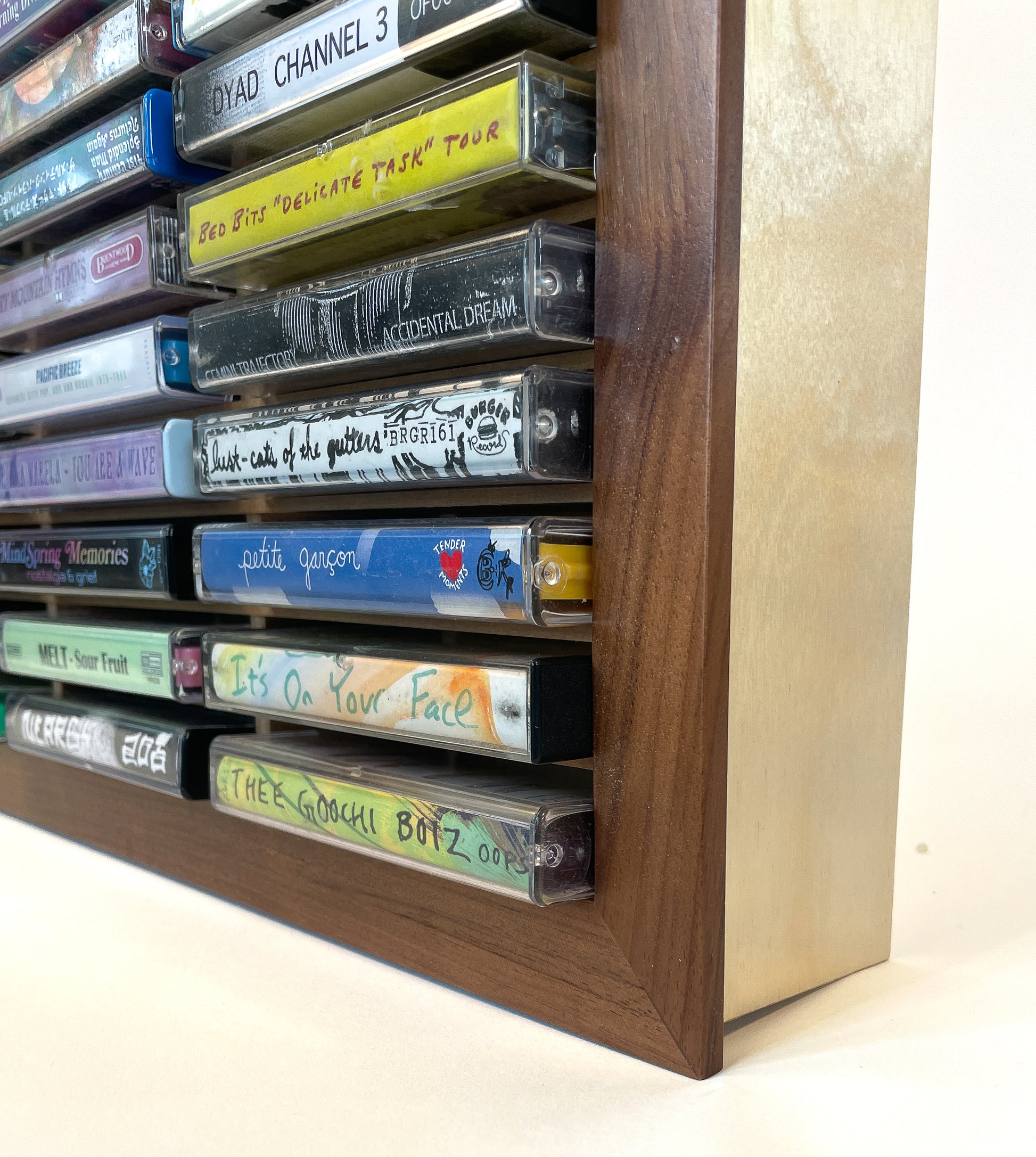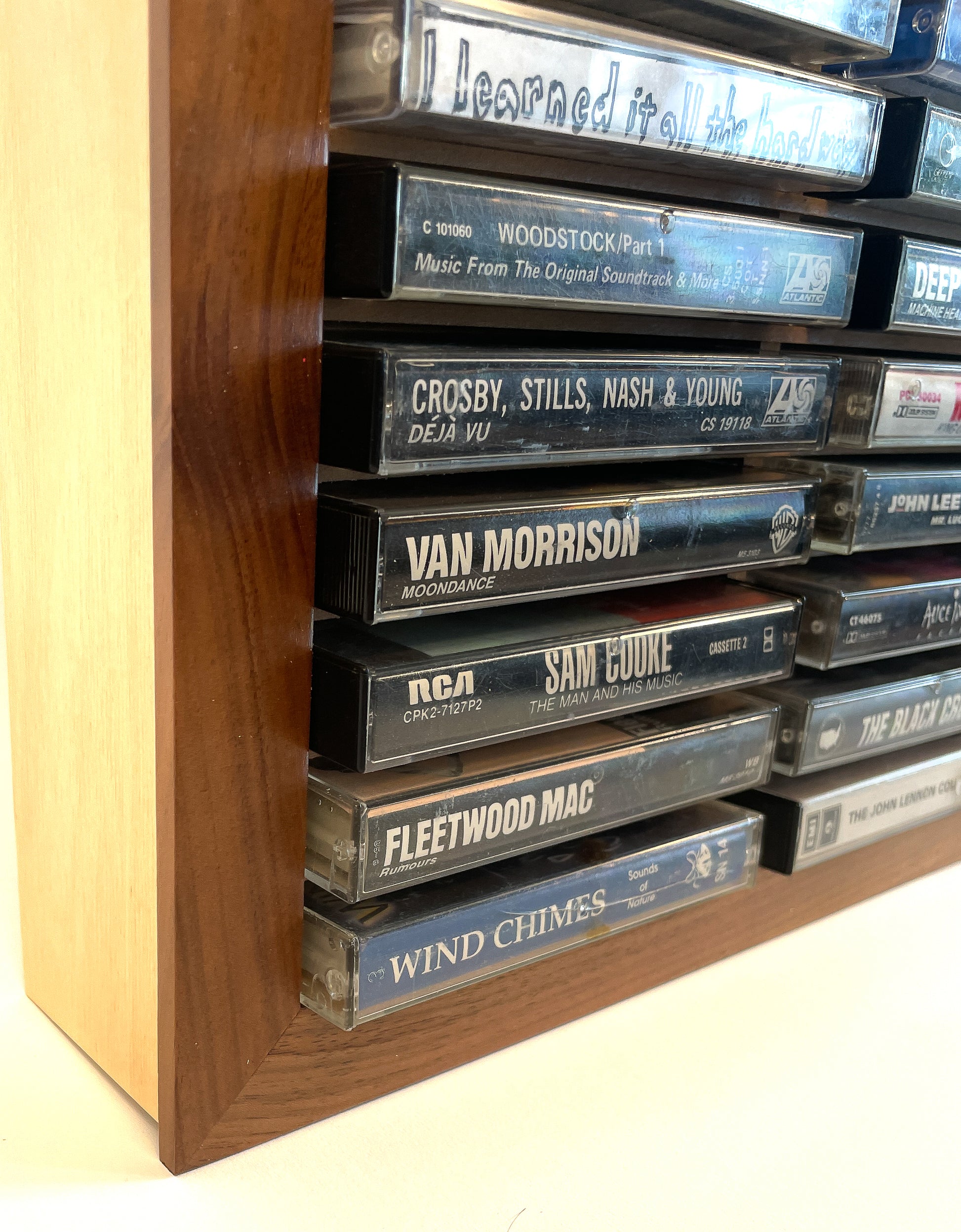 - Each slot fits a standard Cassette Tape (L)4 5/16” X (W)3/4” X (Depth)2 1/4”