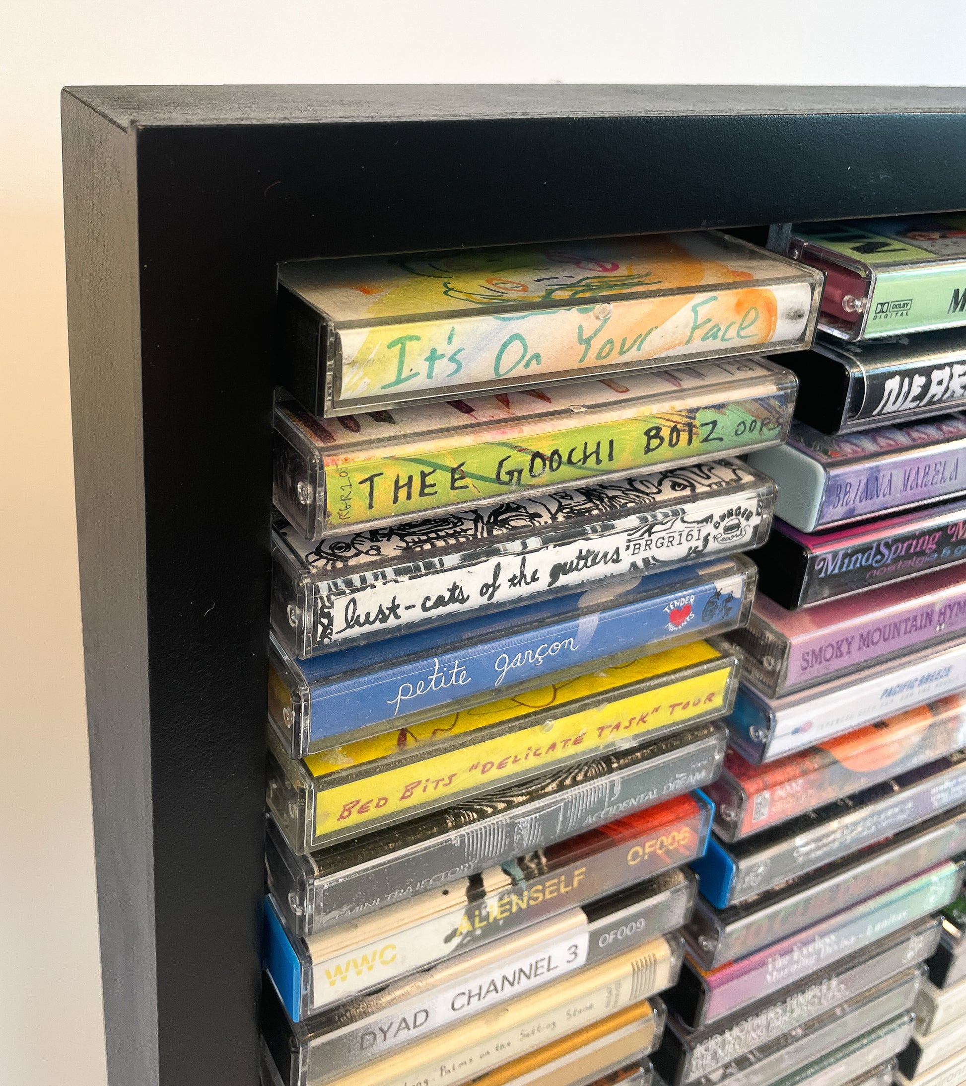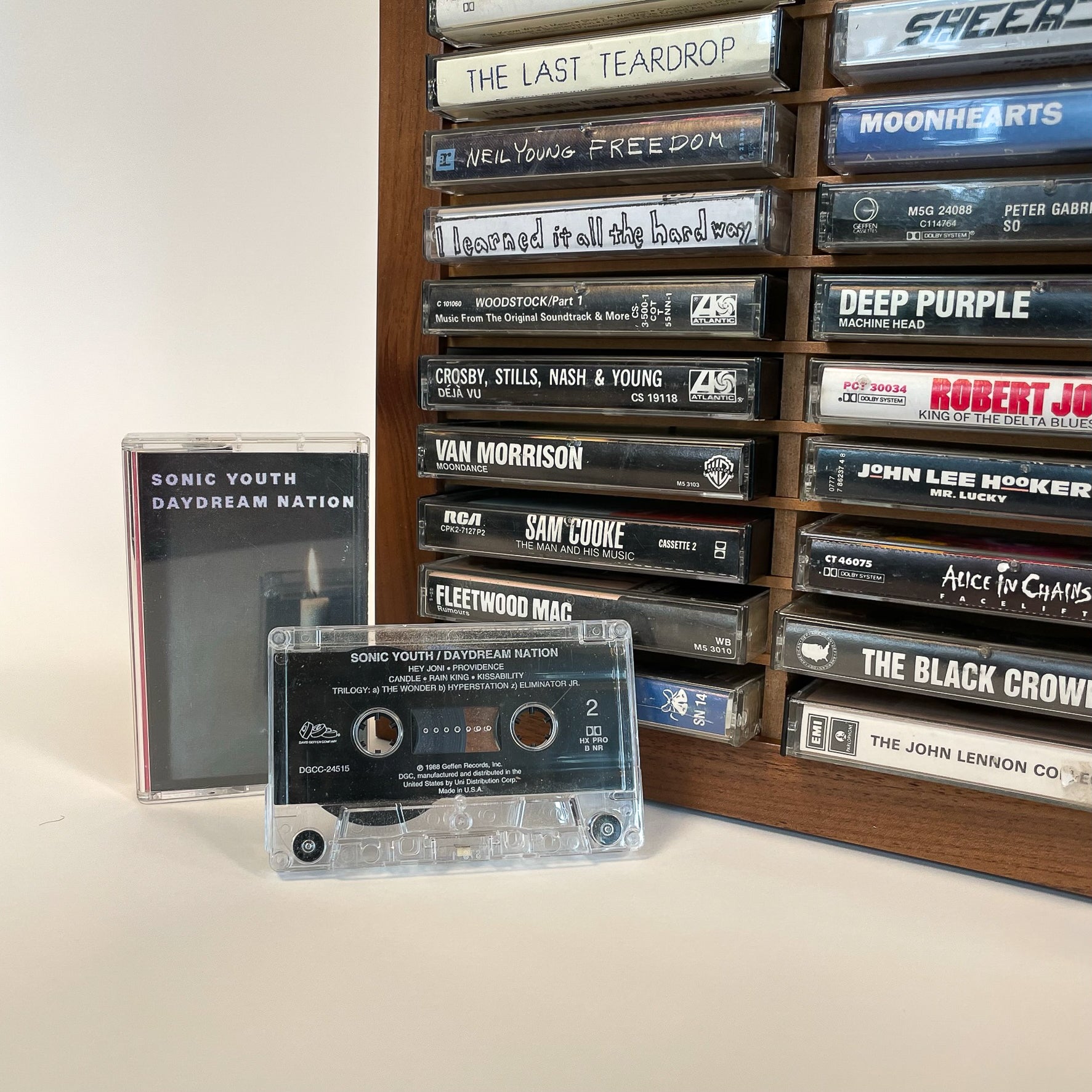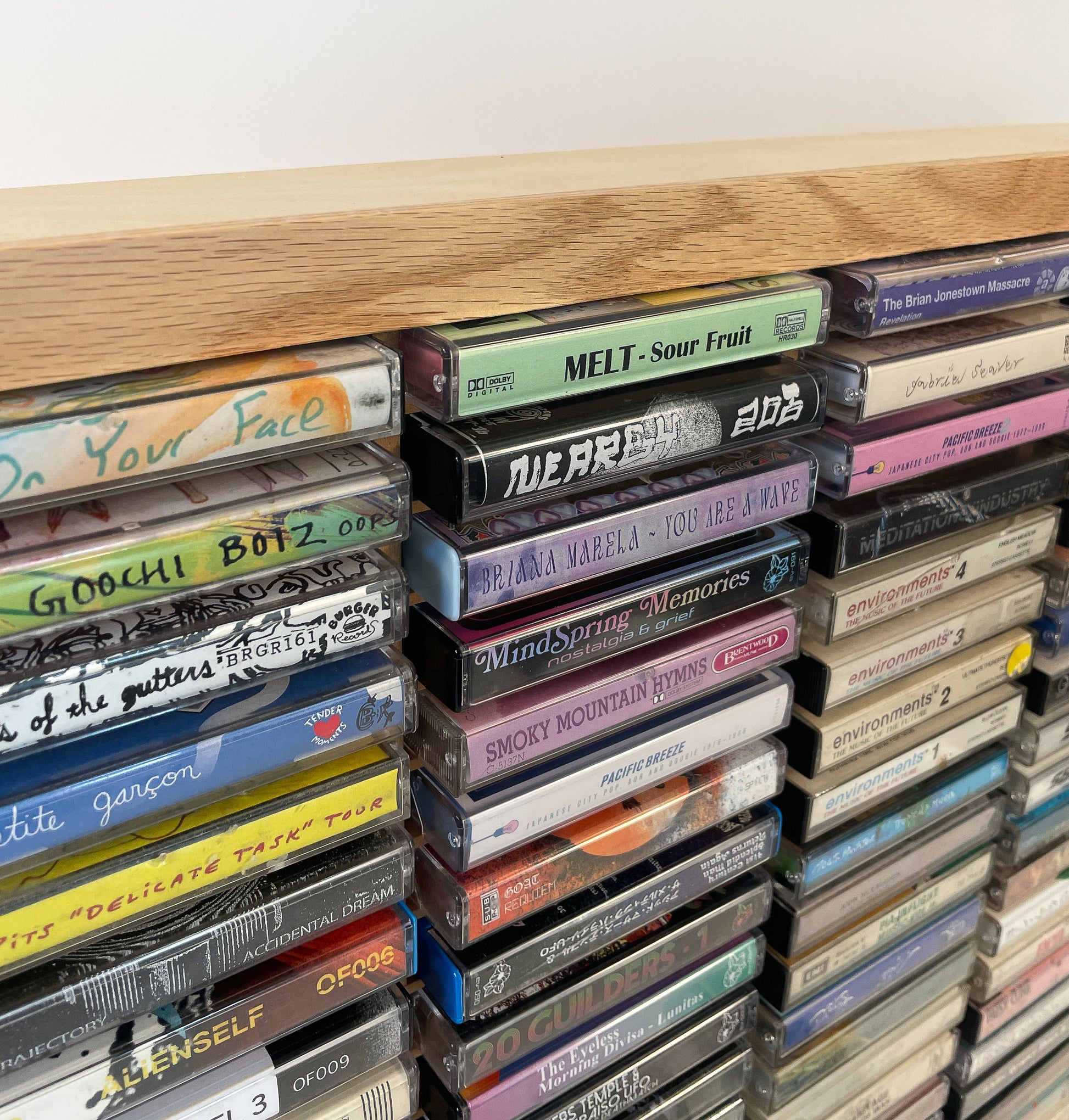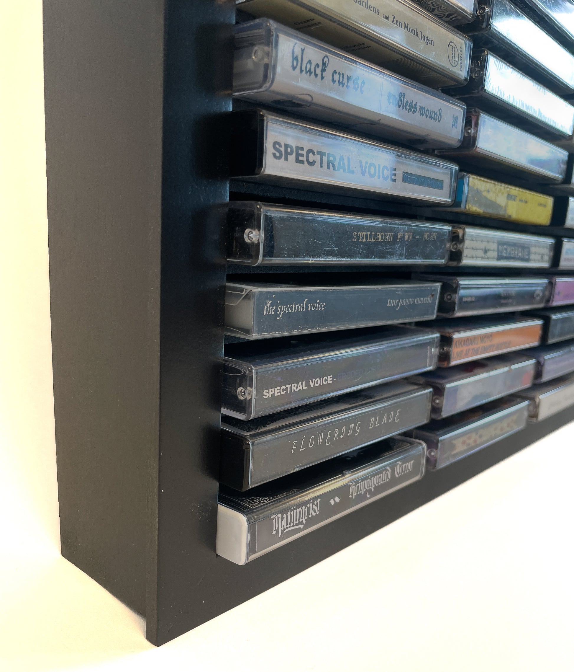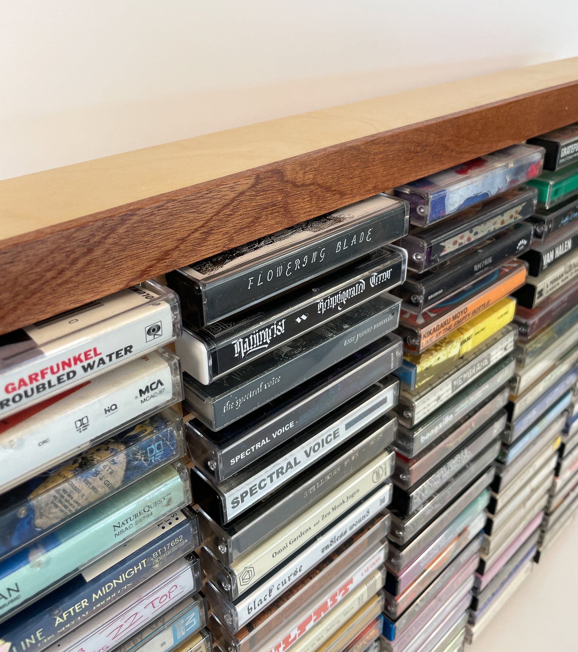 - Each slot fits a standard Cassette Tape (L)4 5/16” X (W)3/4” X (Depth)2 1/4”