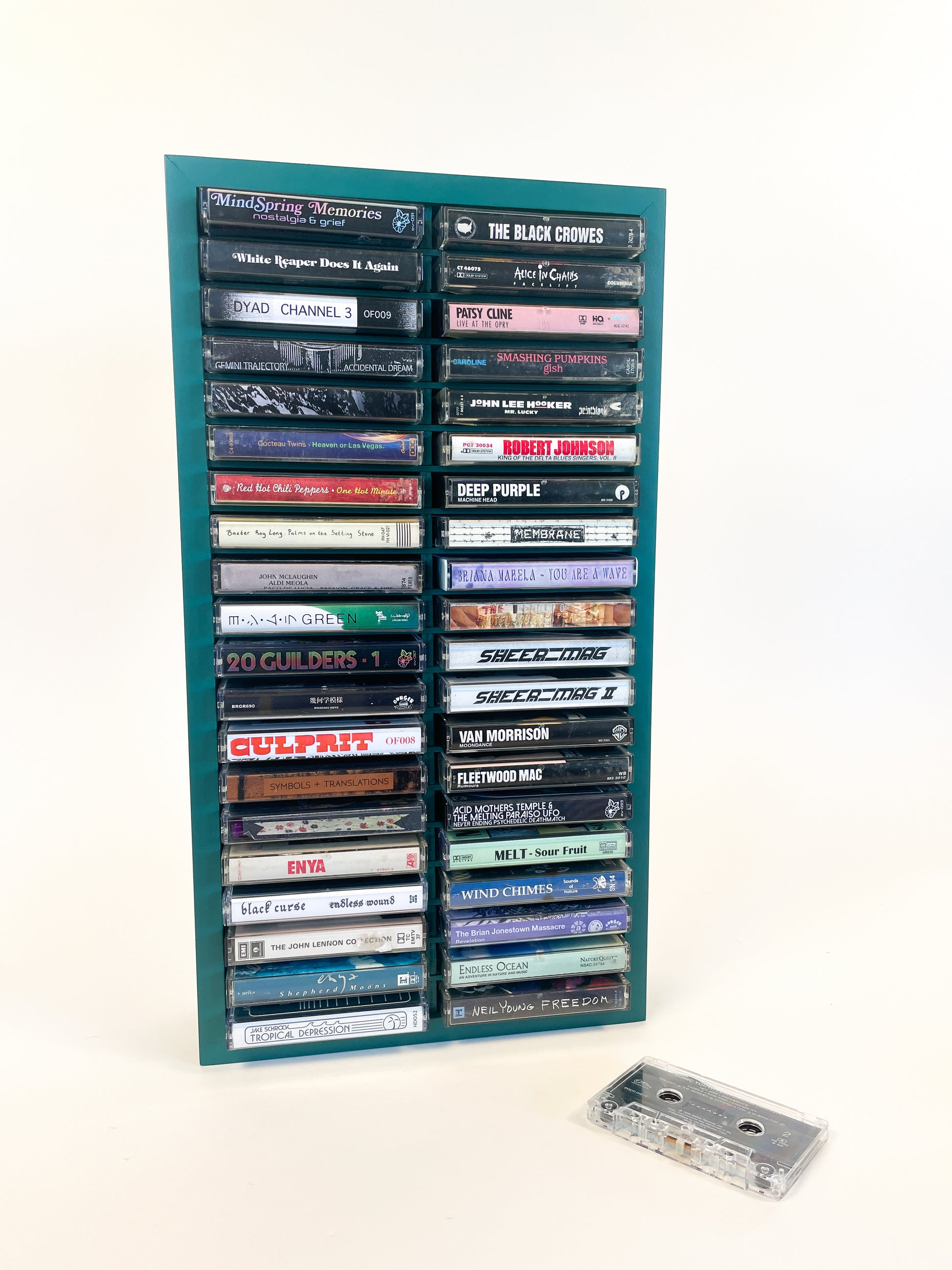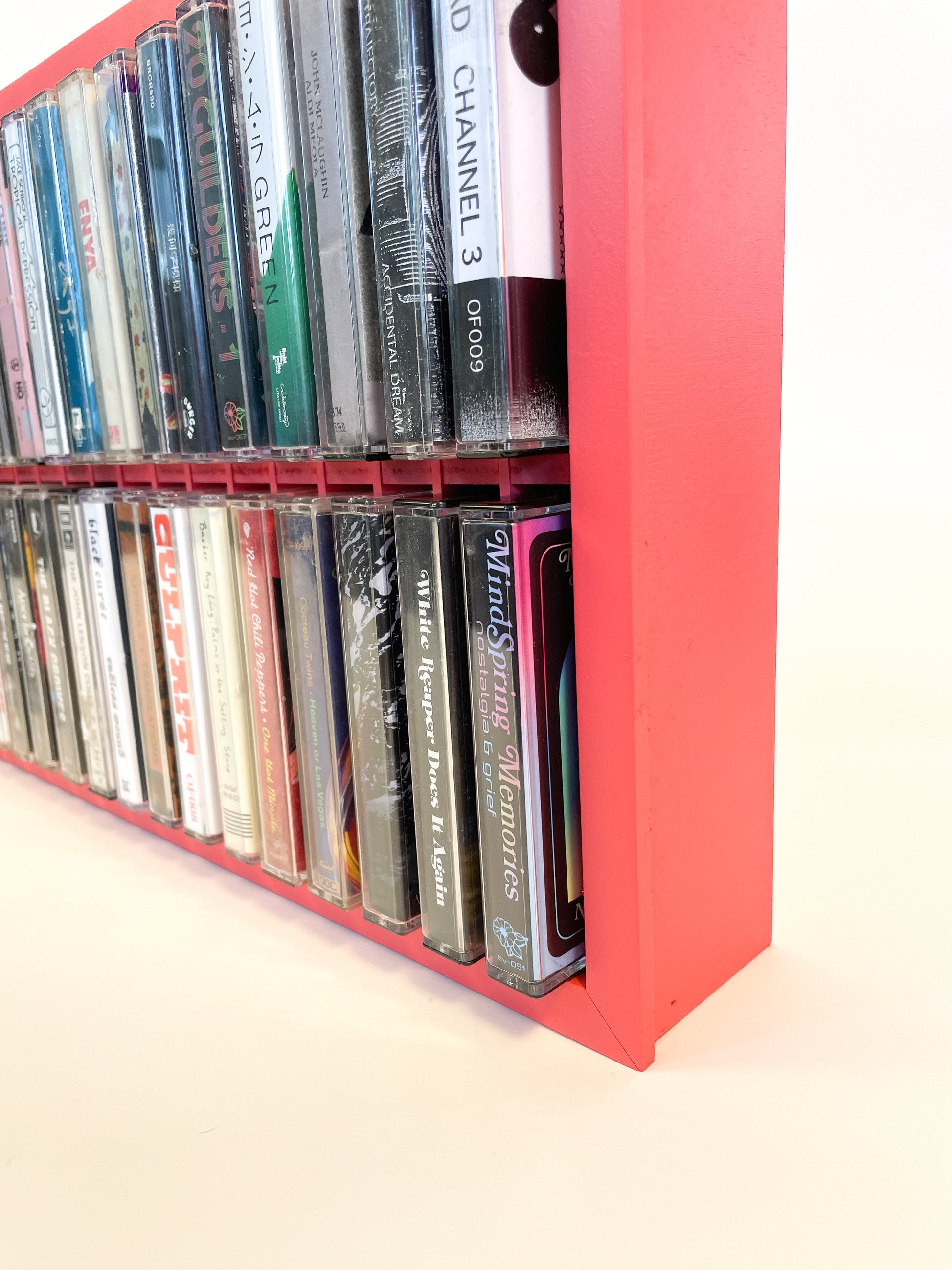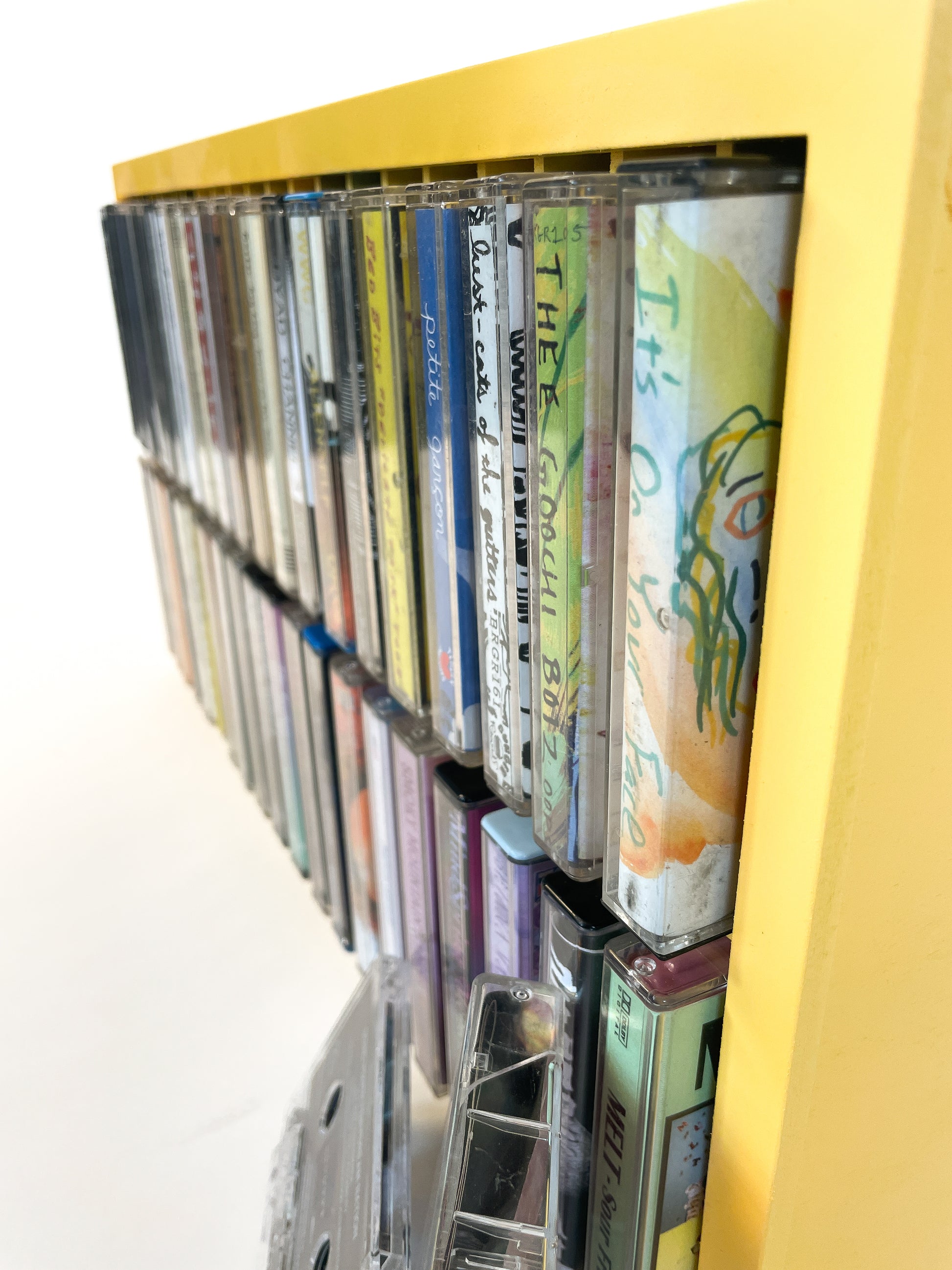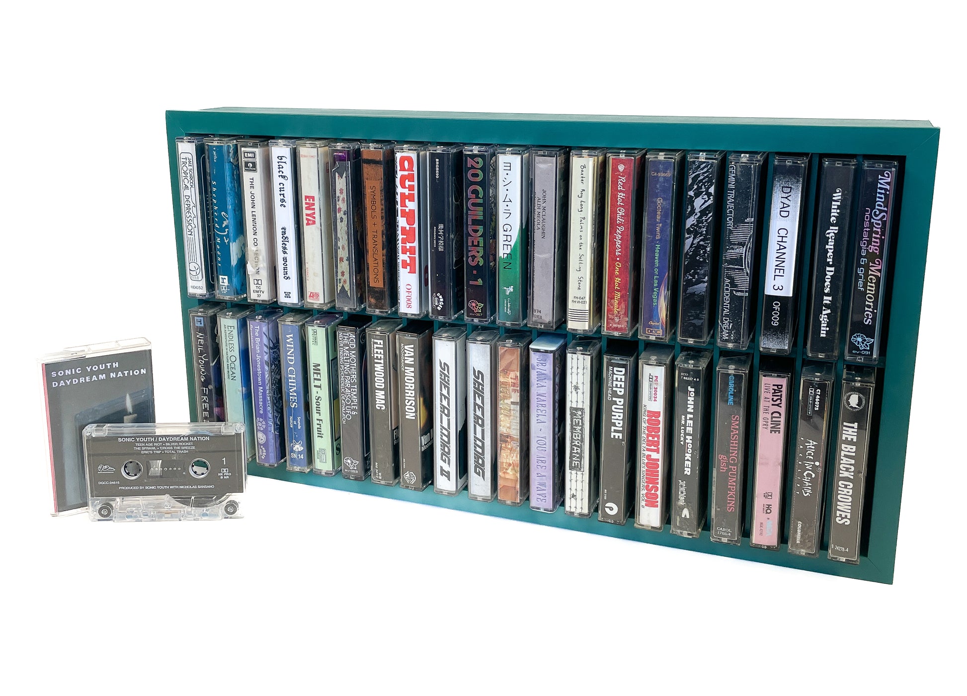 - Each slot fits a standard Cassette Tape (L)4 5/16” X (W)3/4” X (Depth)2 1/4”