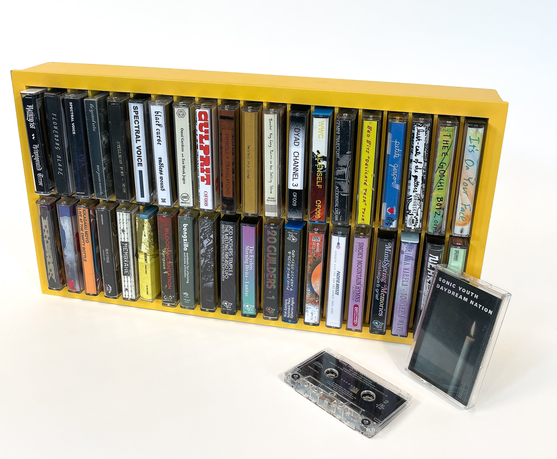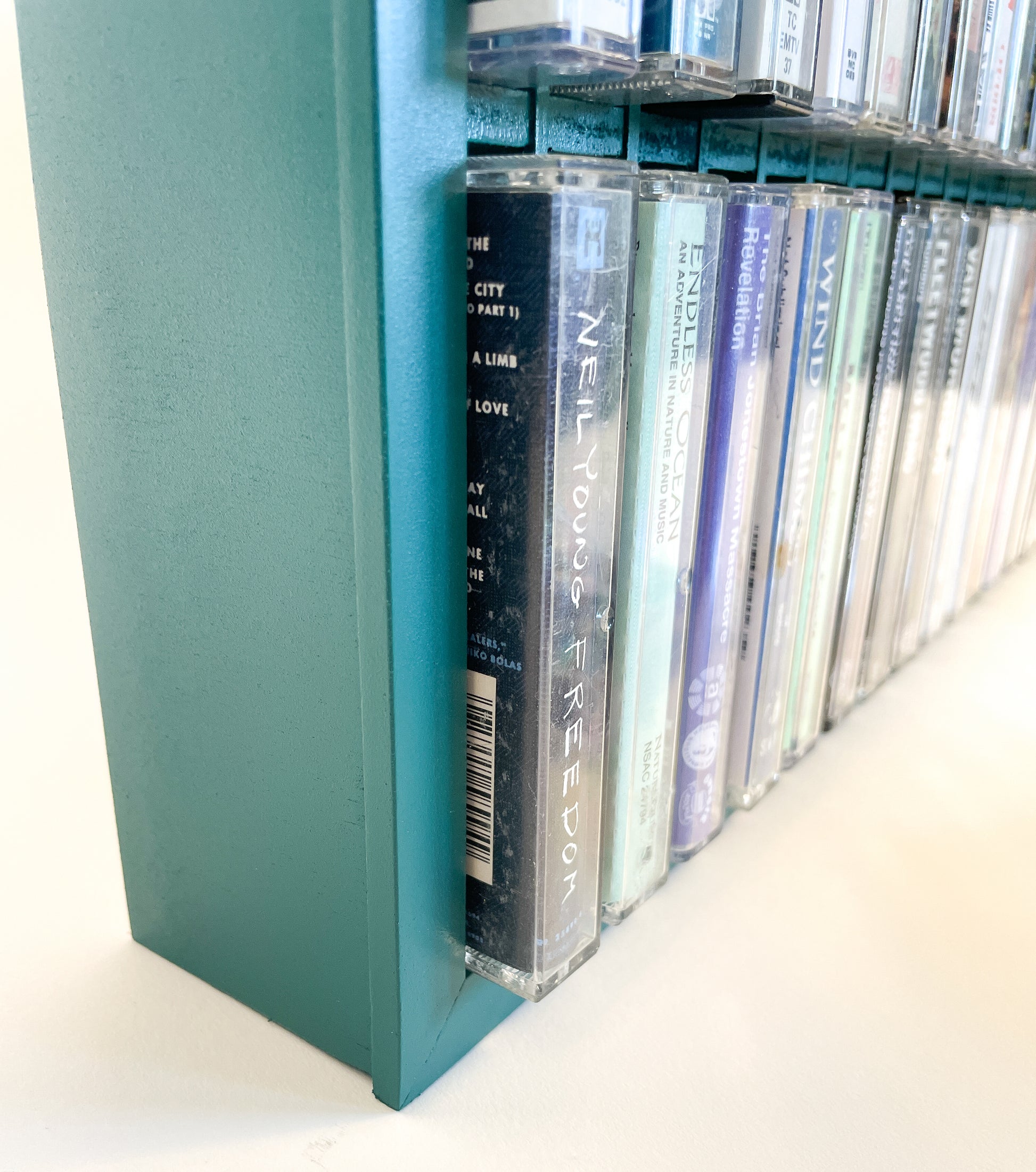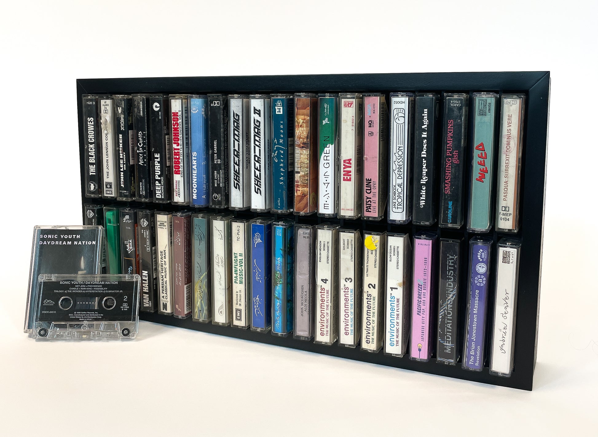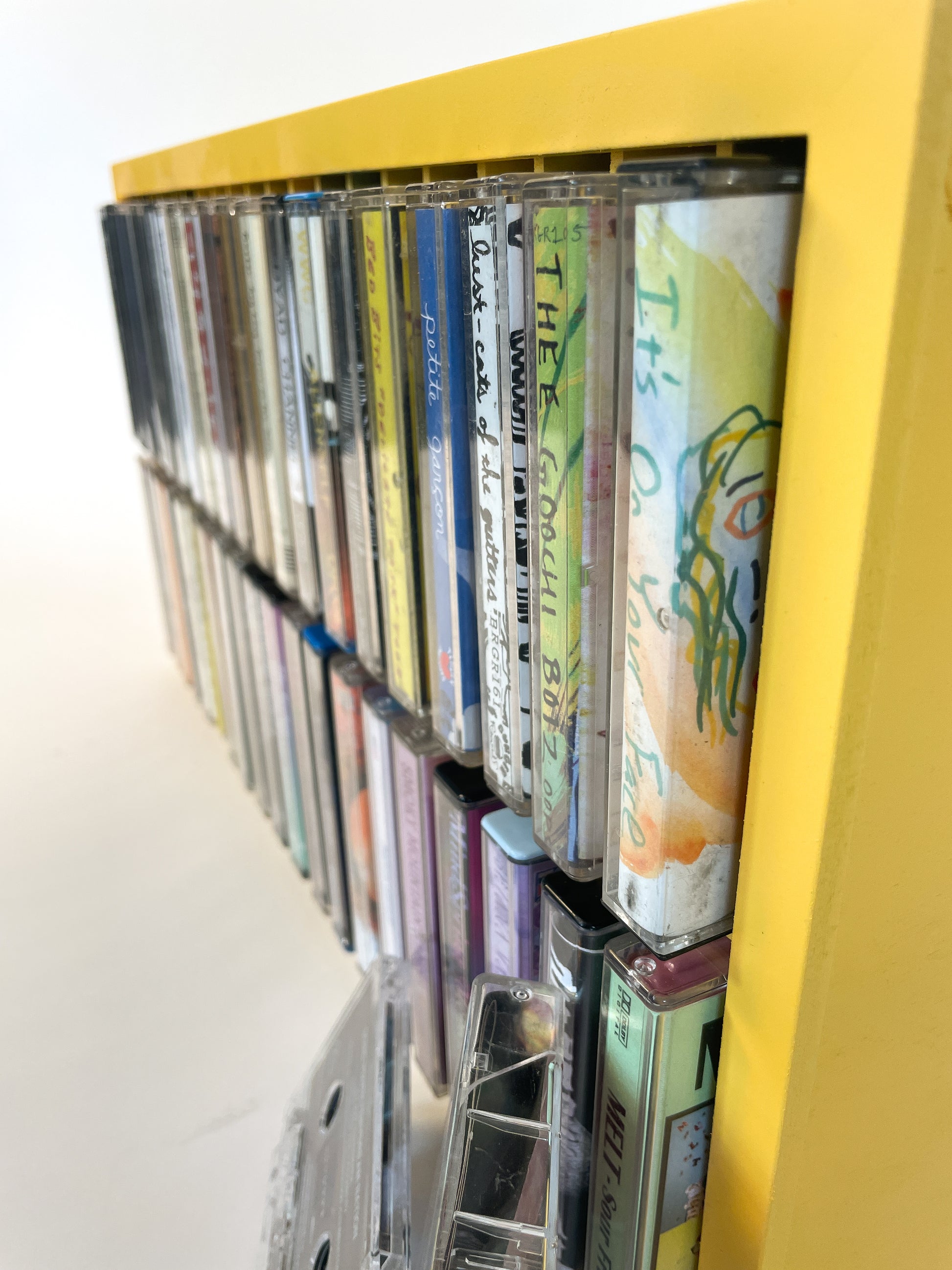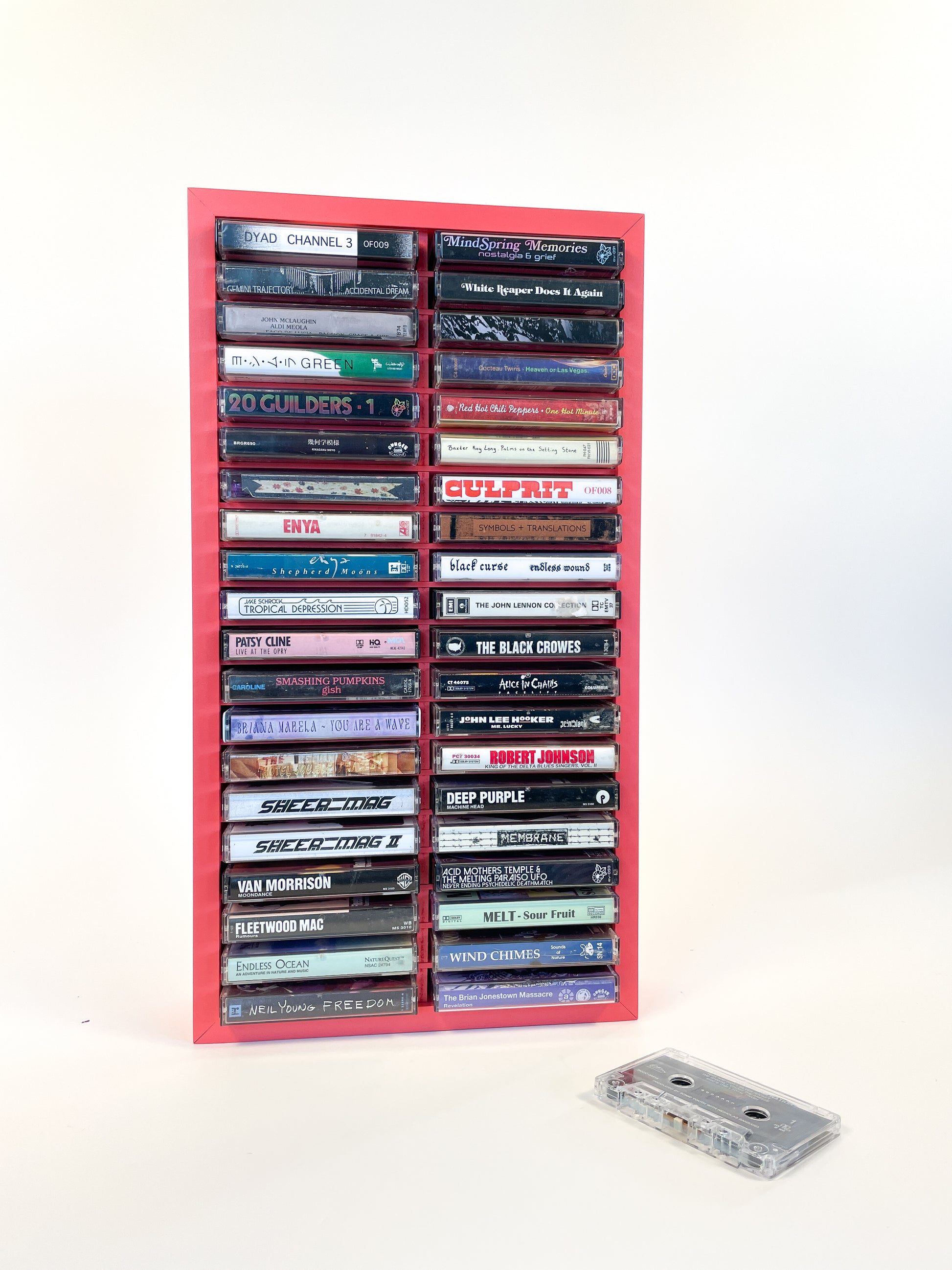 - Each slot fits a standard Cassette Tape (L)4 5/16” X (W)3/4” X (Depth)2 1/4”