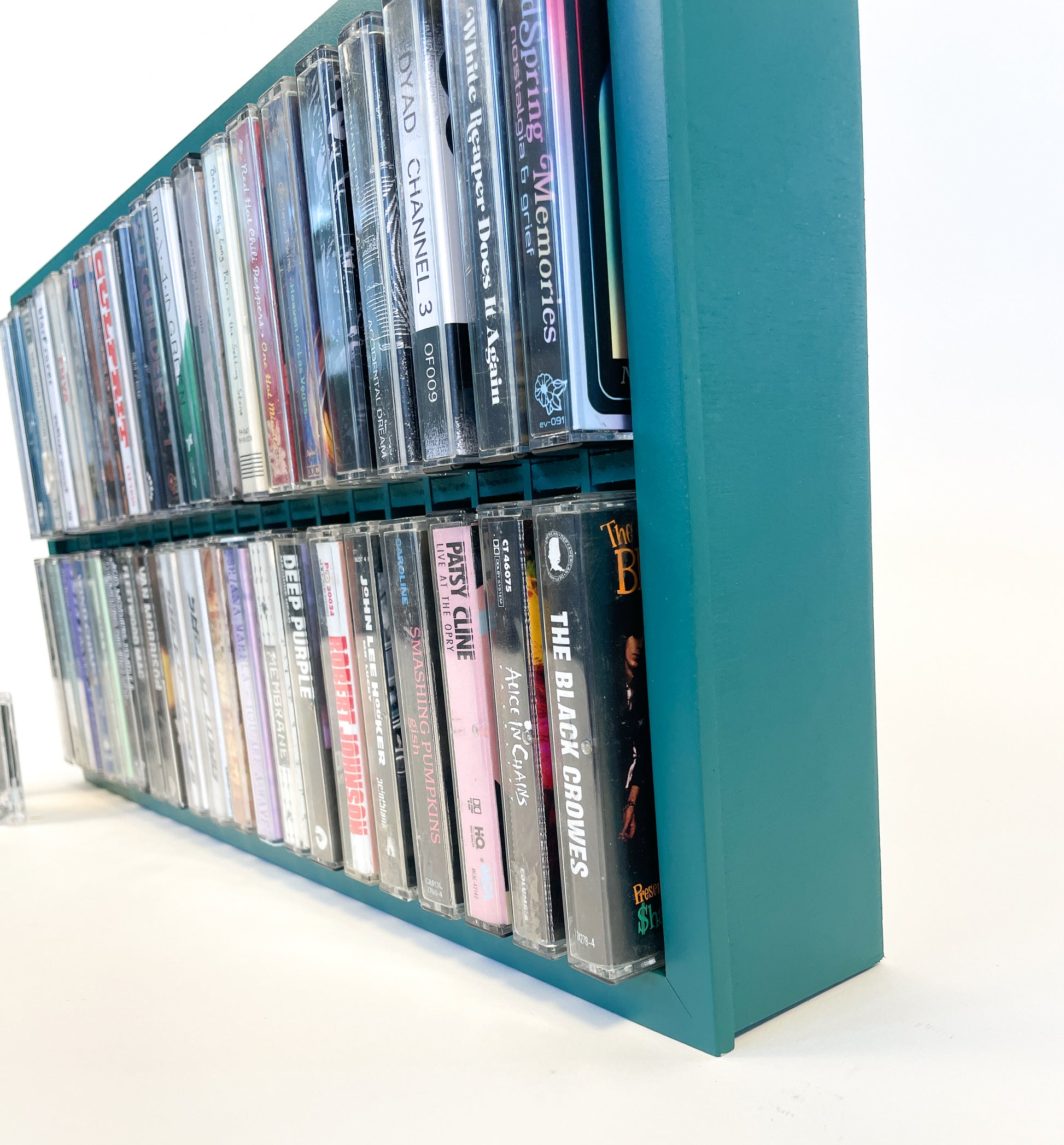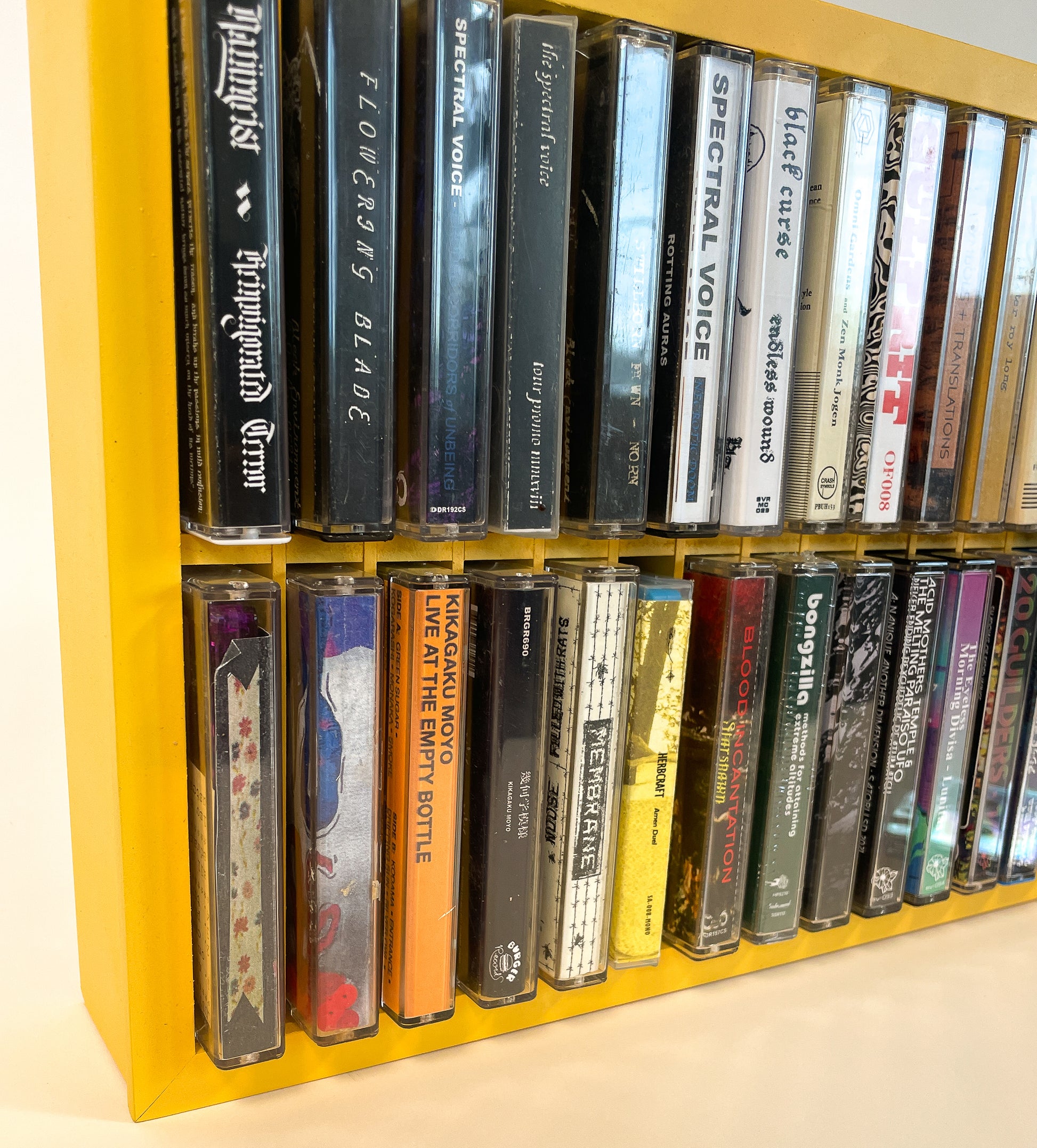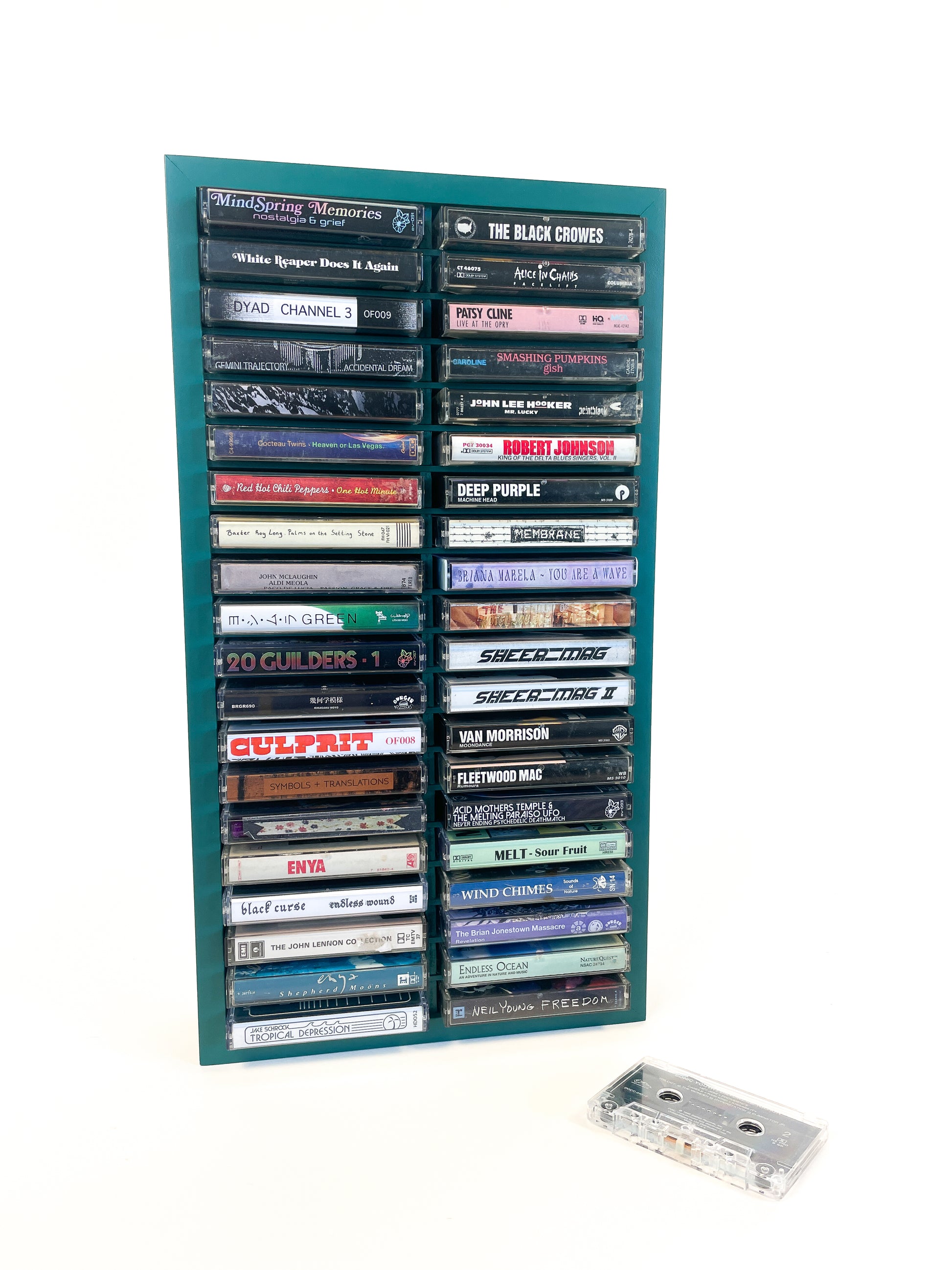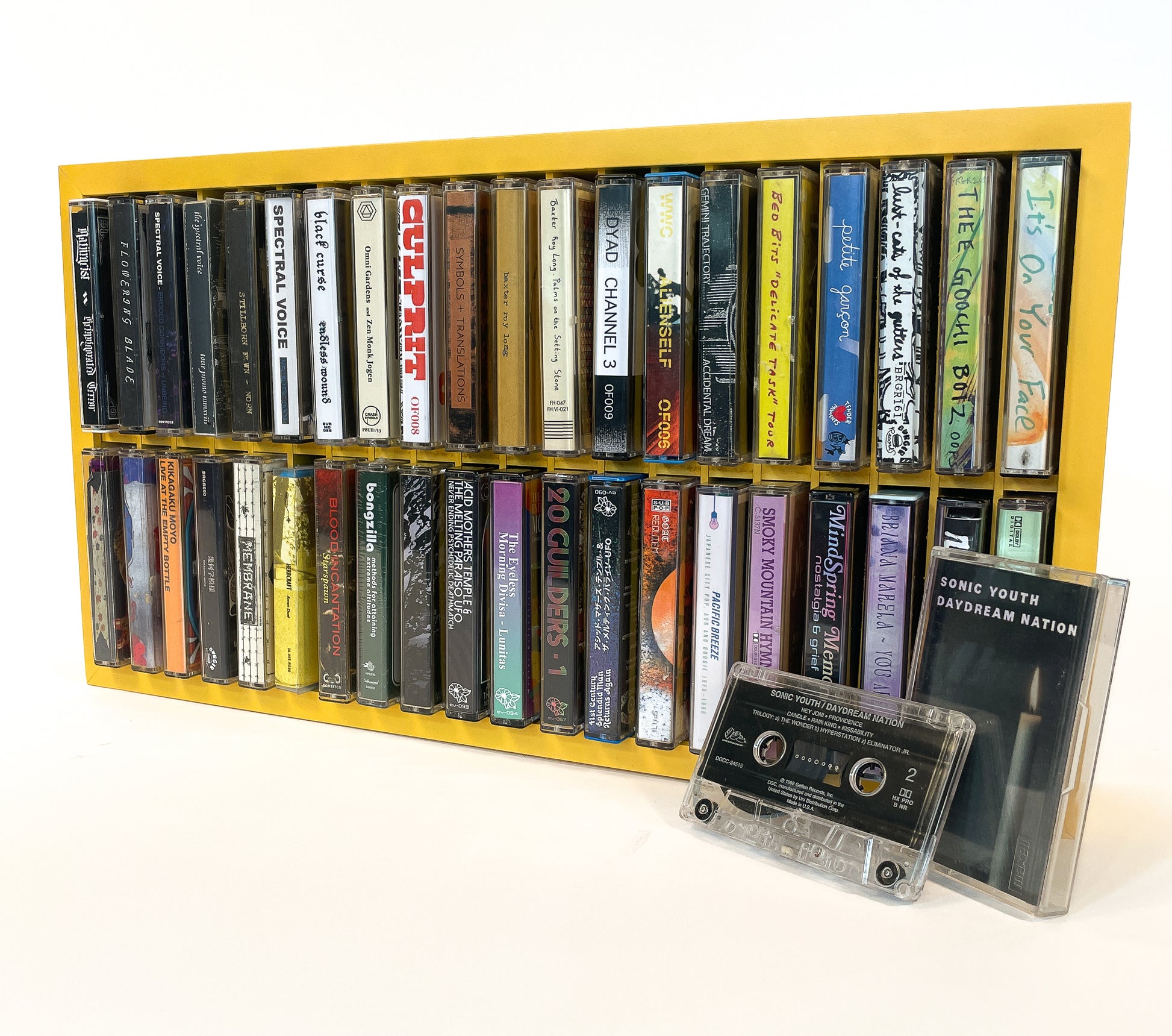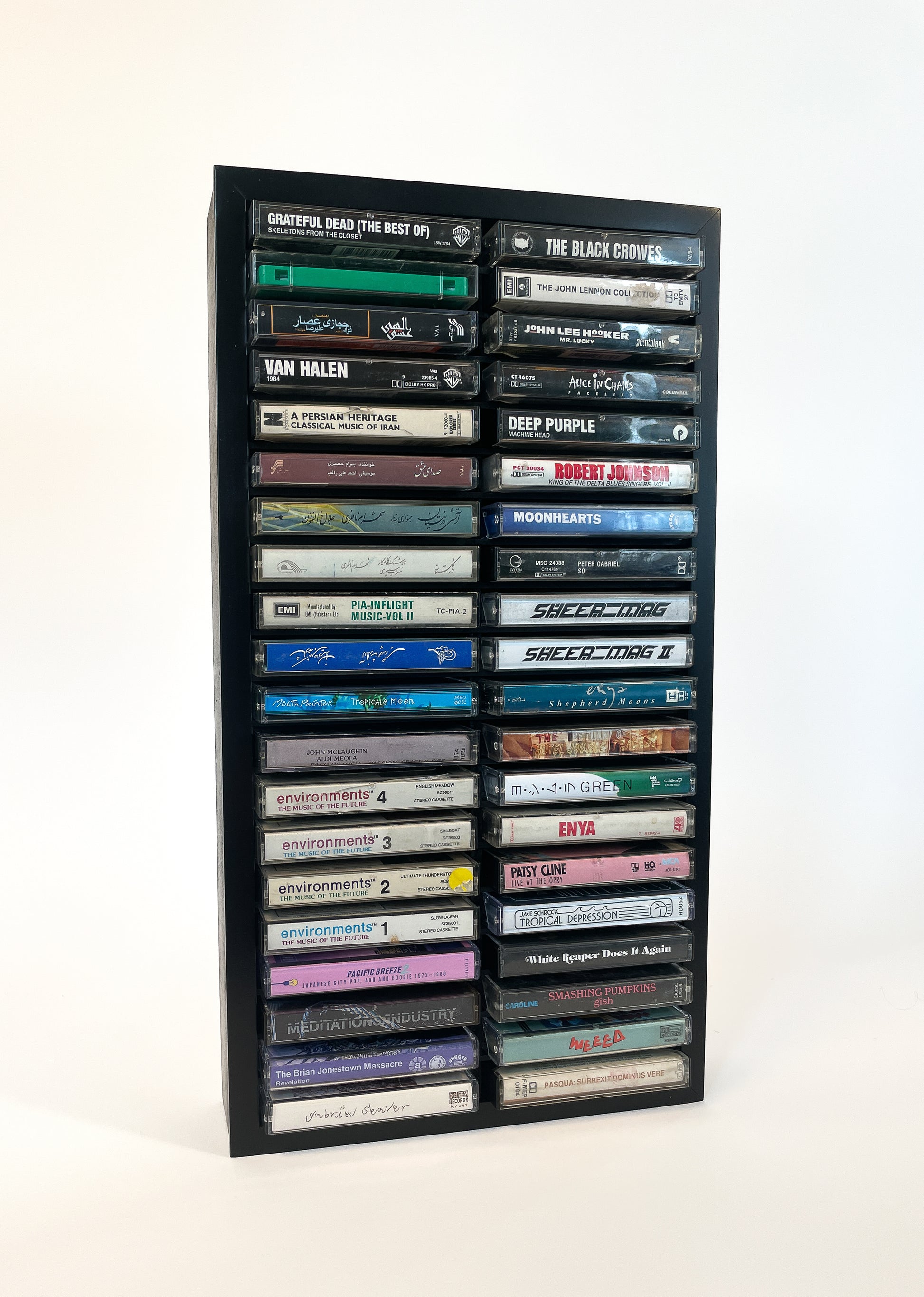 - Each slot fits a standard Cassette Tape (L)4 5/16” X (W)3/4” X (Depth)2 1/4”
