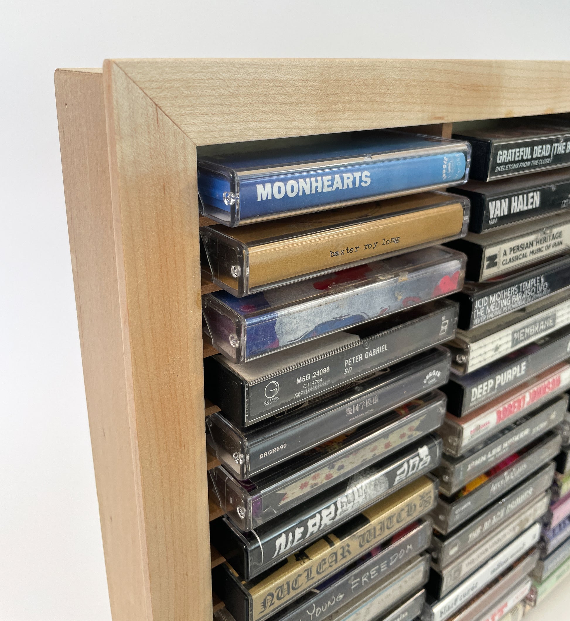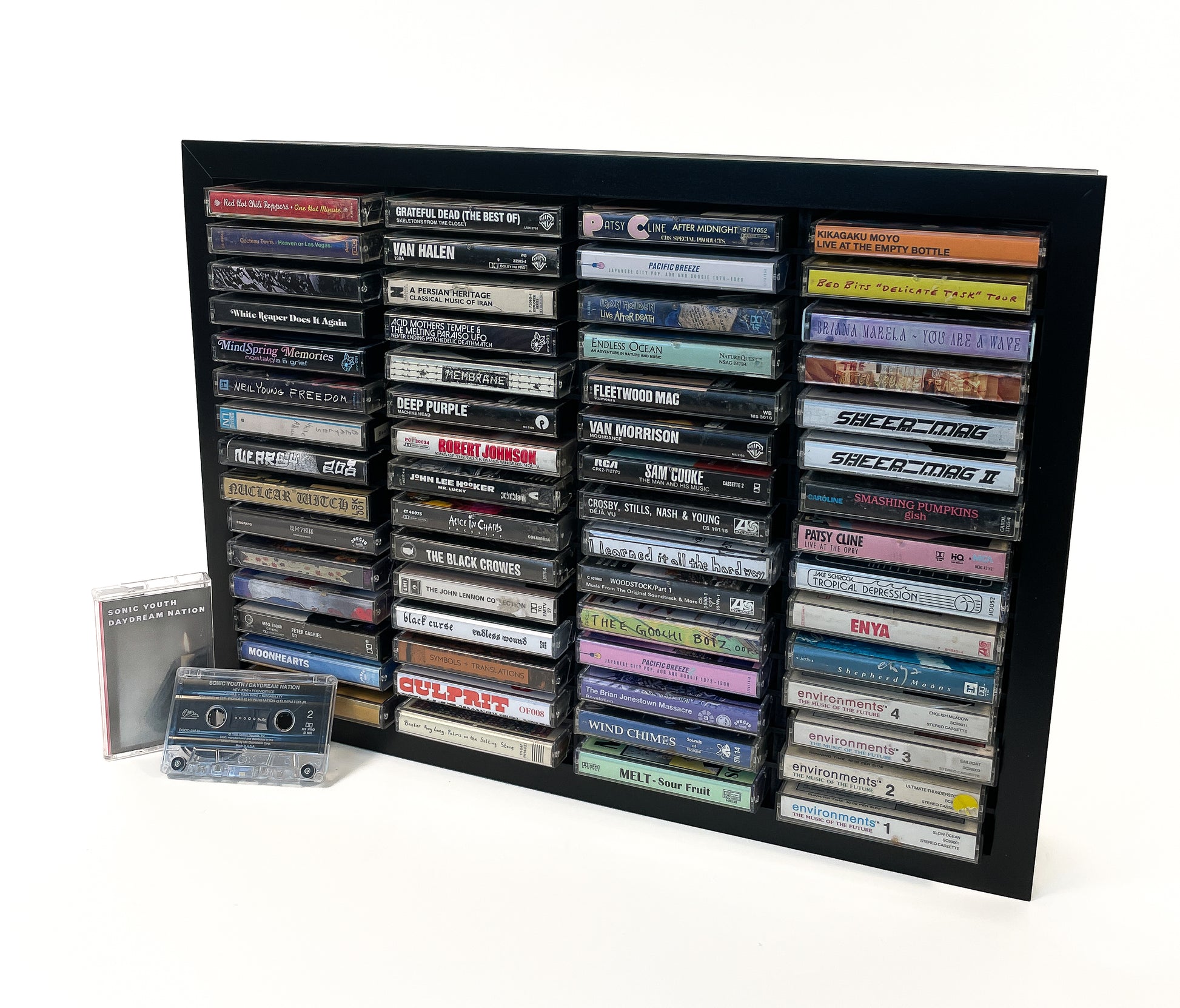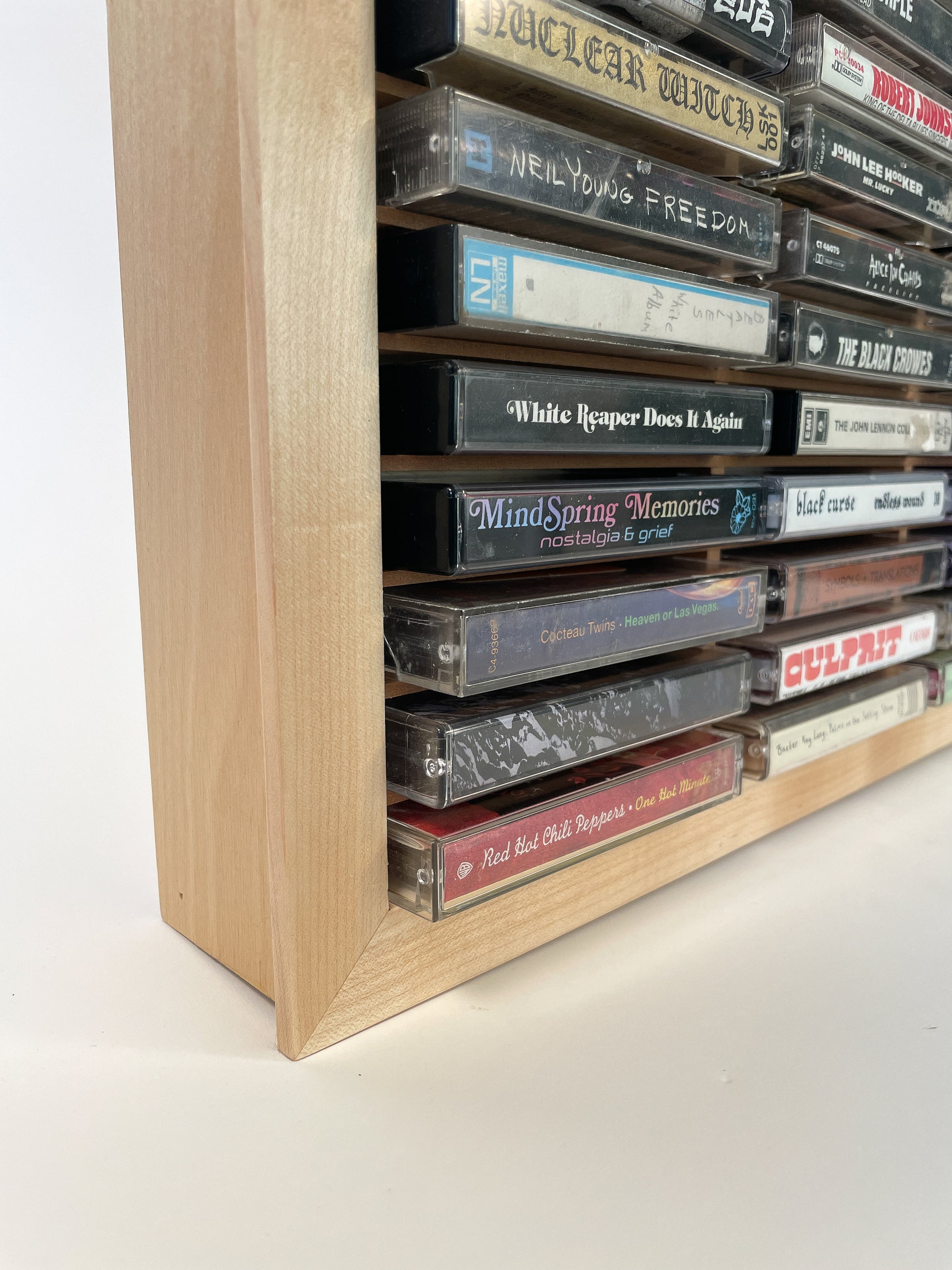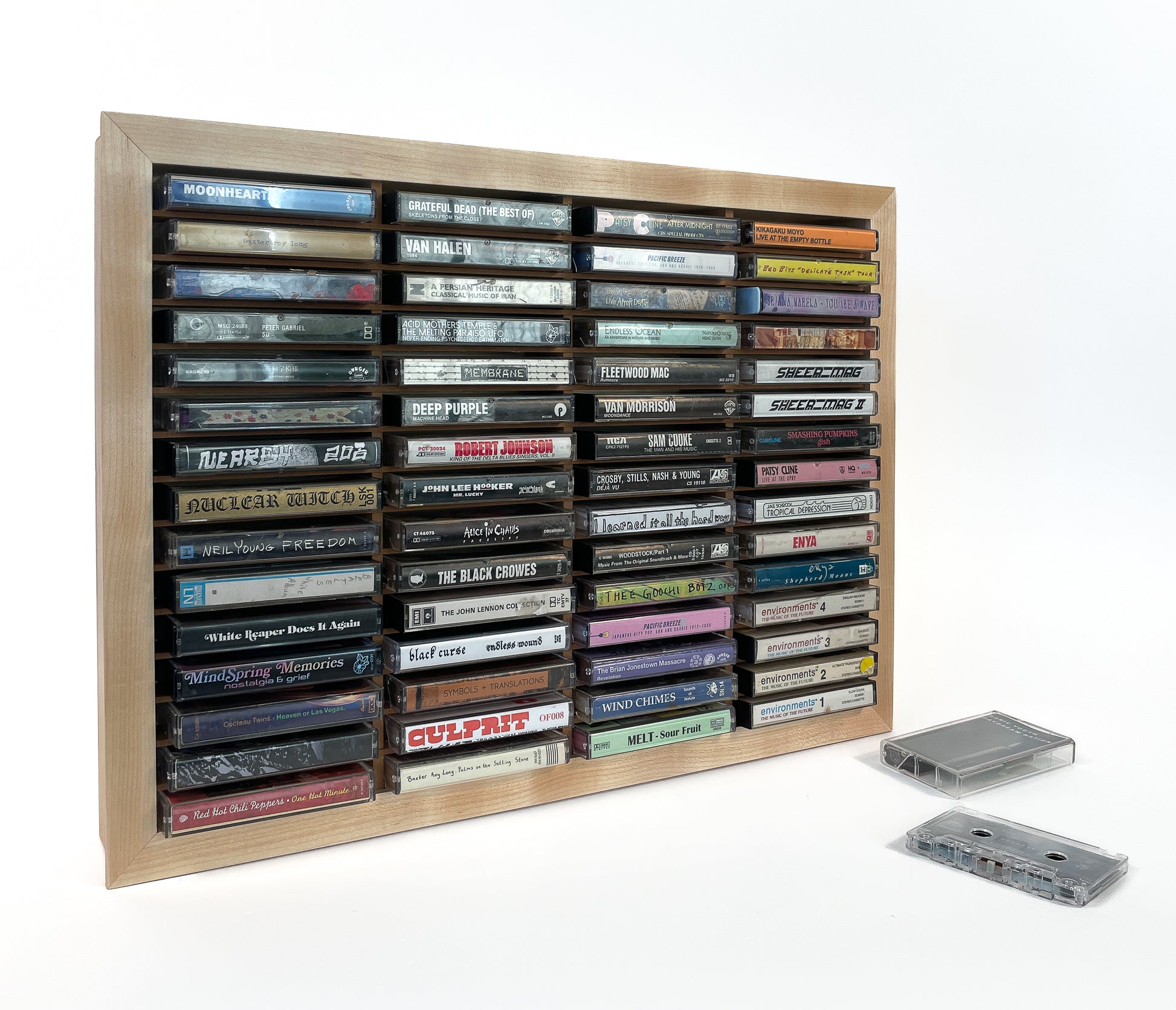 - Each slot fits a standard Cassette Tape (L)4 5/16” X (W)3/4” X (Depth)2 1/4”
