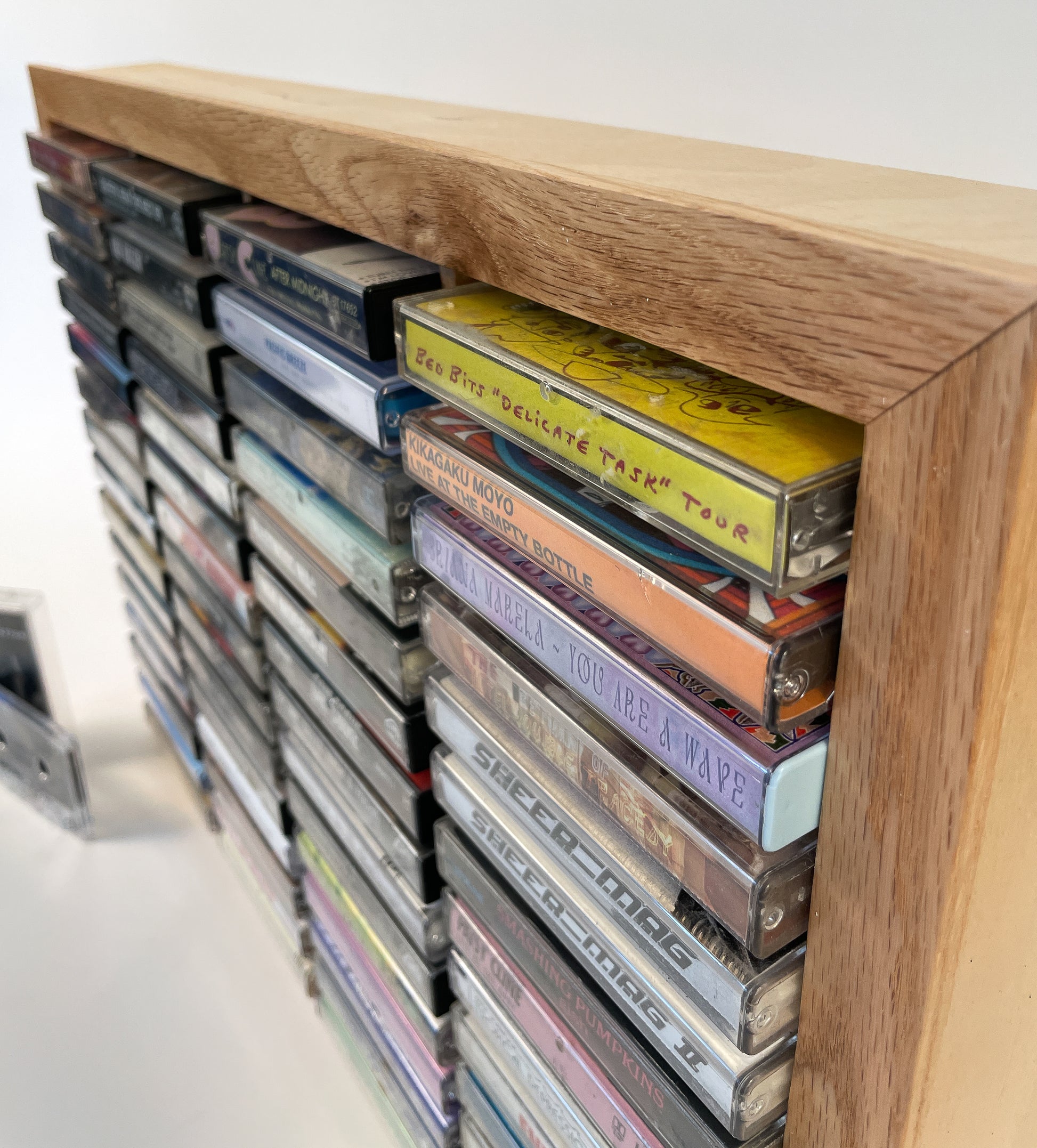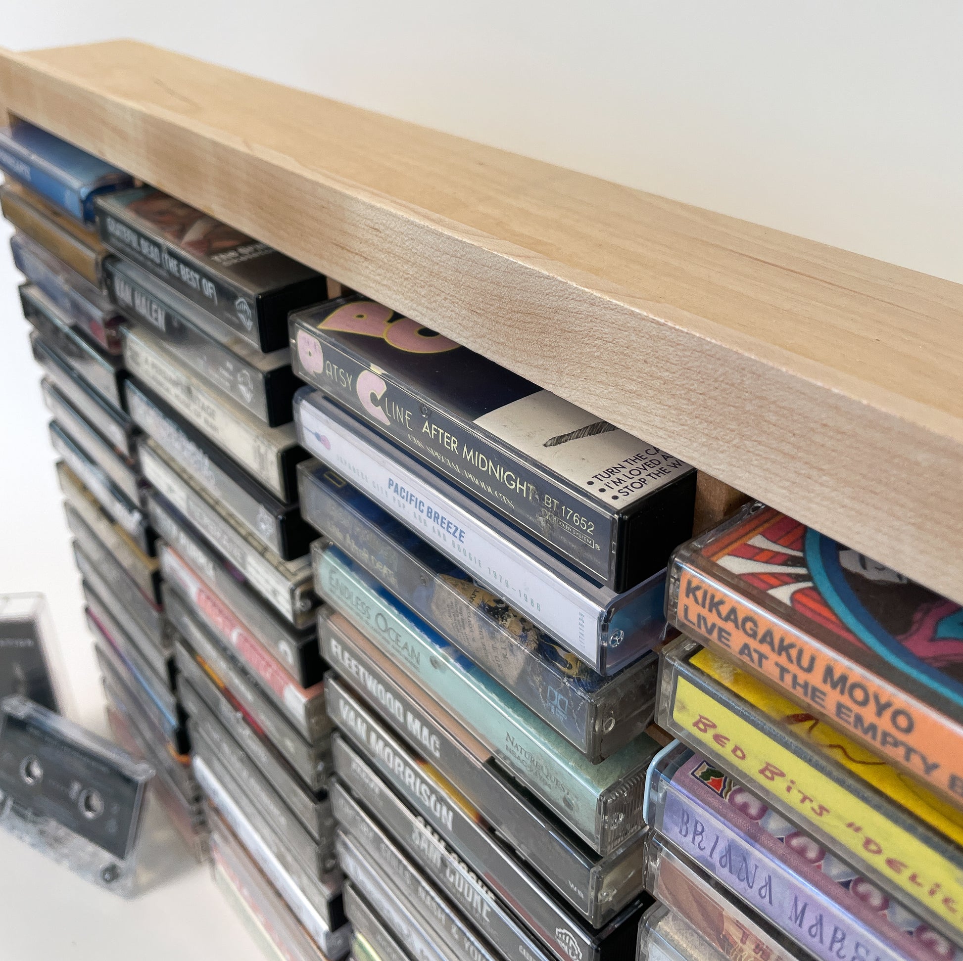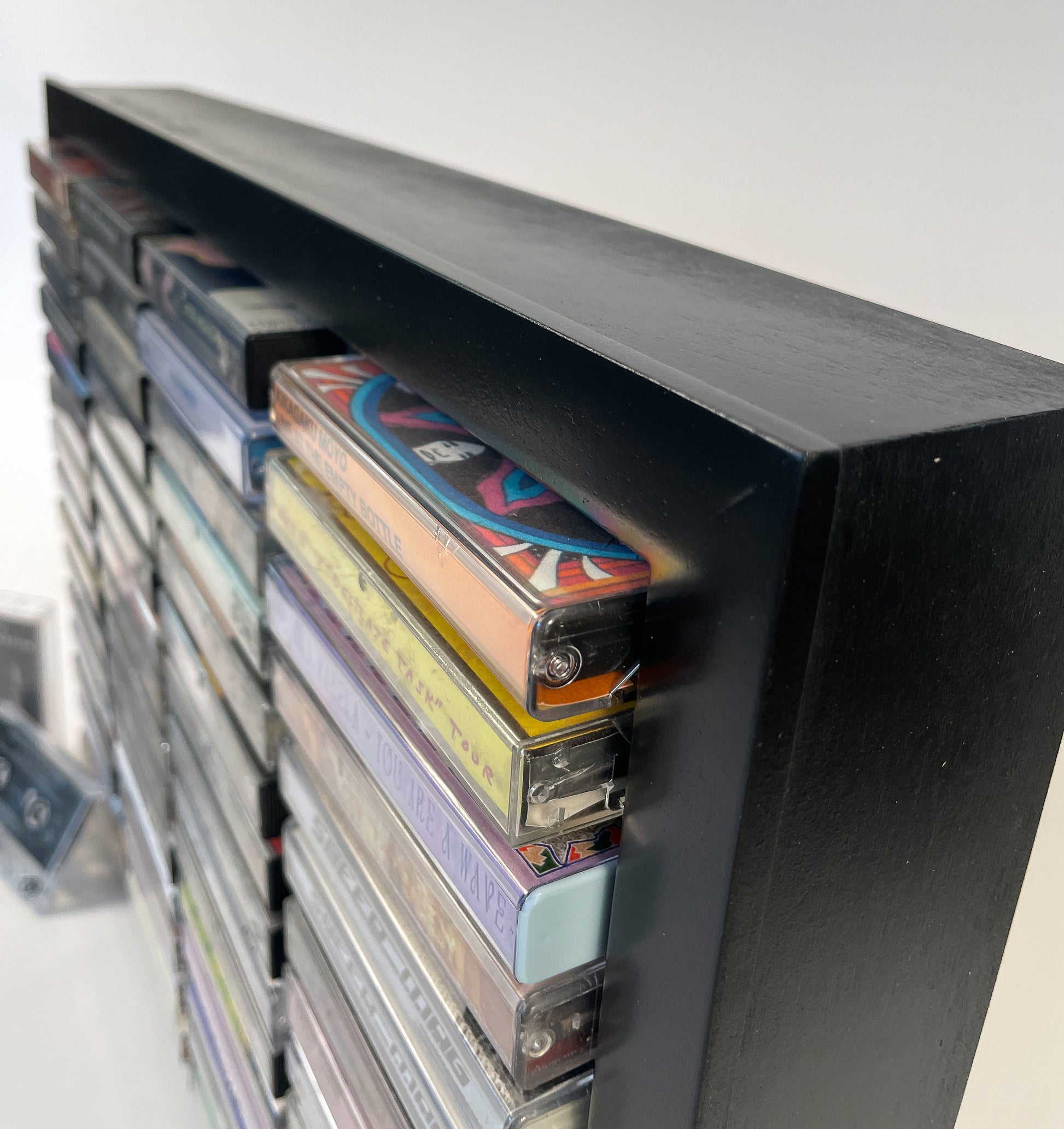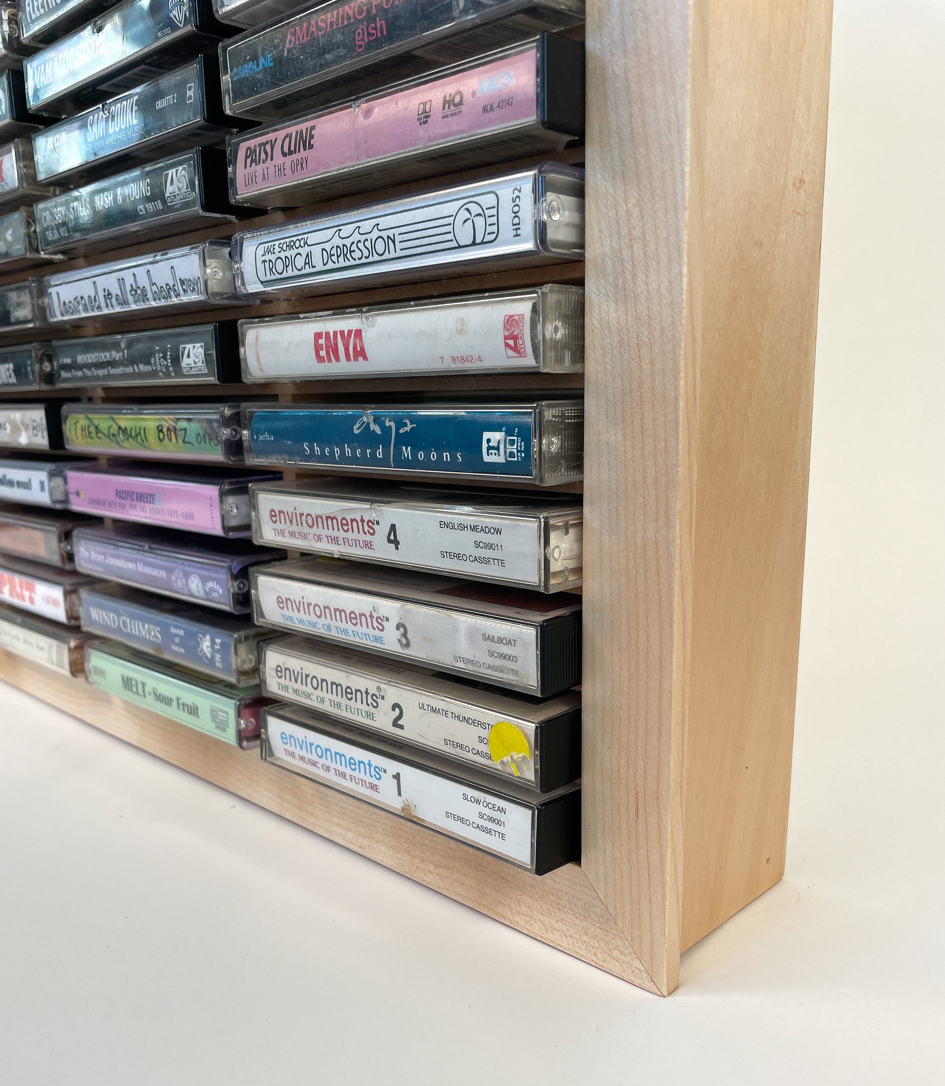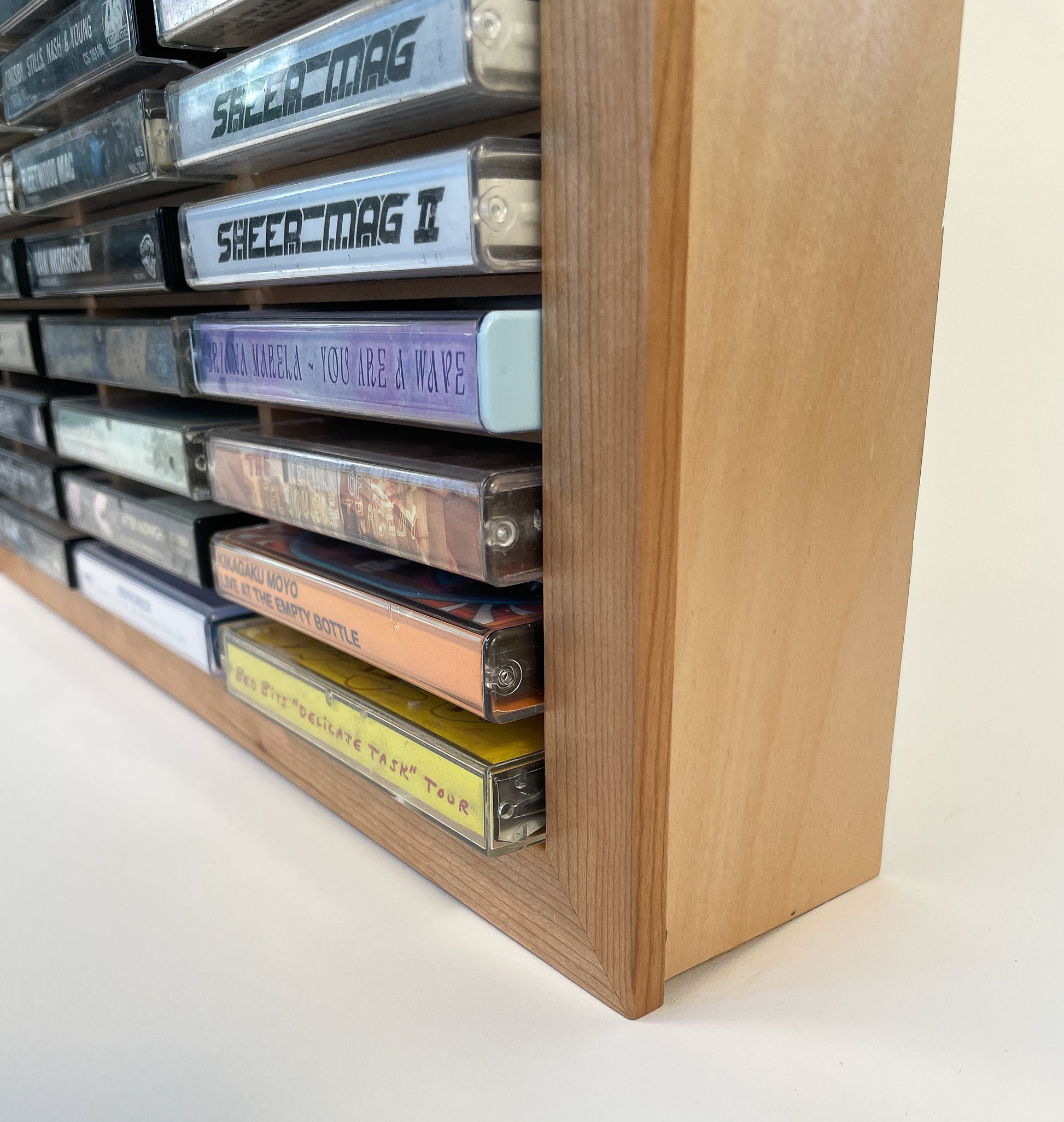 - Each slot fits a standard Cassette Tape (L)4 5/16” X (W)3/4” X (Depth)2 1/4”
