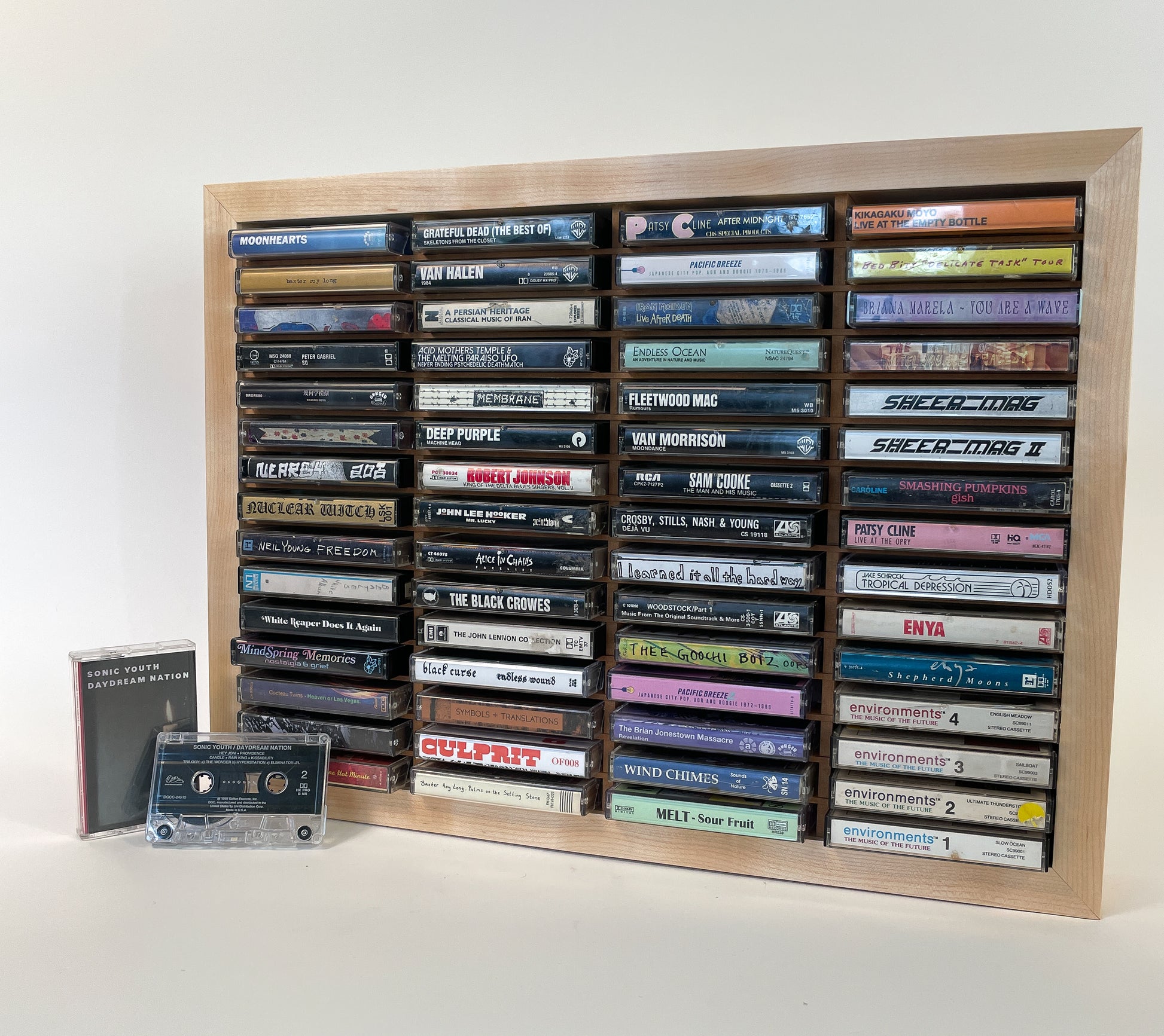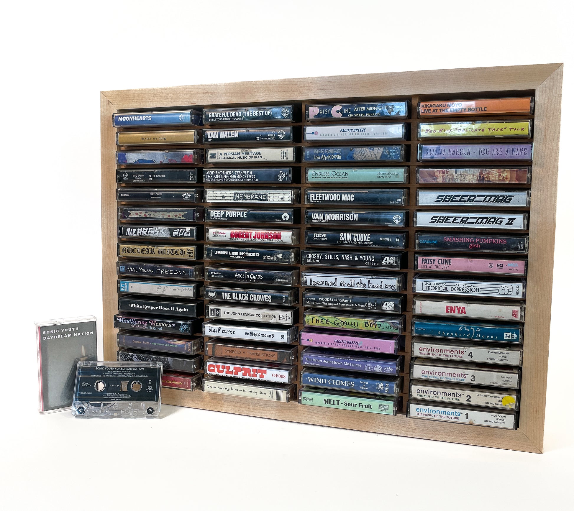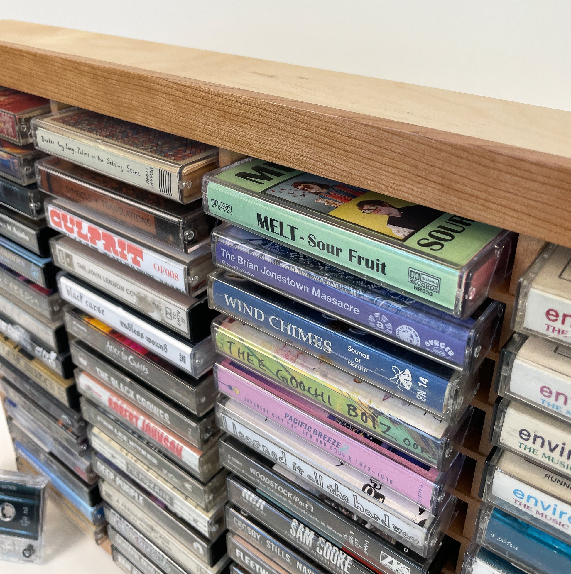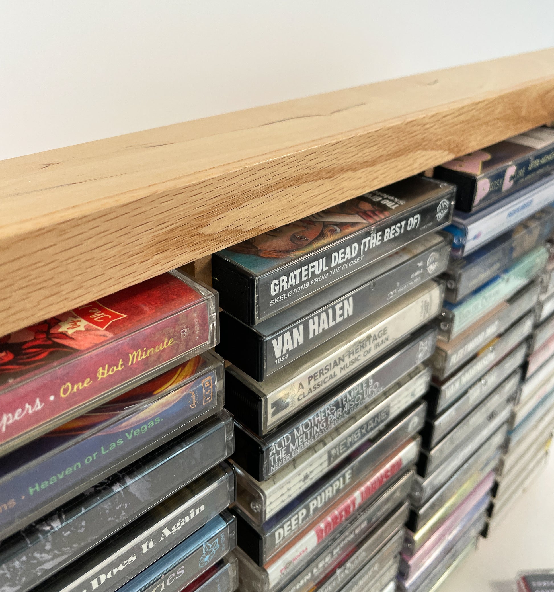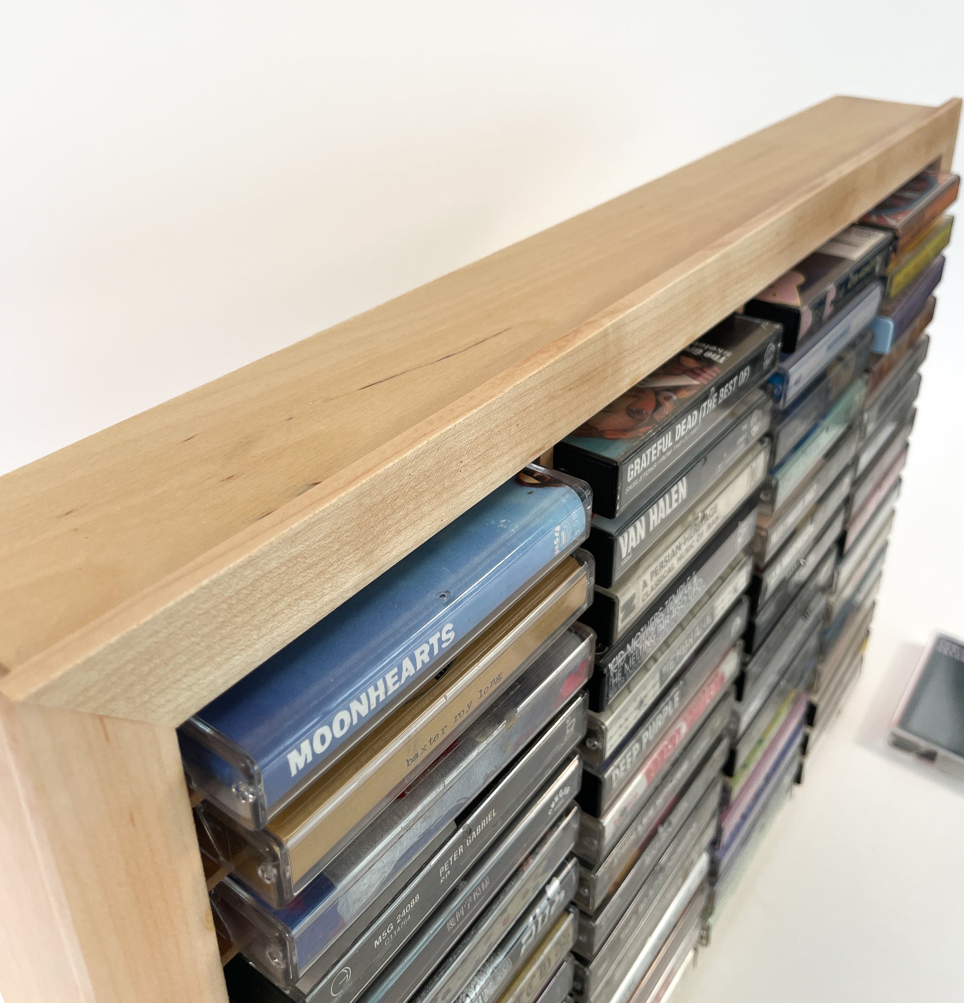 - Each slot fits a standard Cassette Tape (L)4 5/16” X (W)3/4” X (Depth)2 1/4”